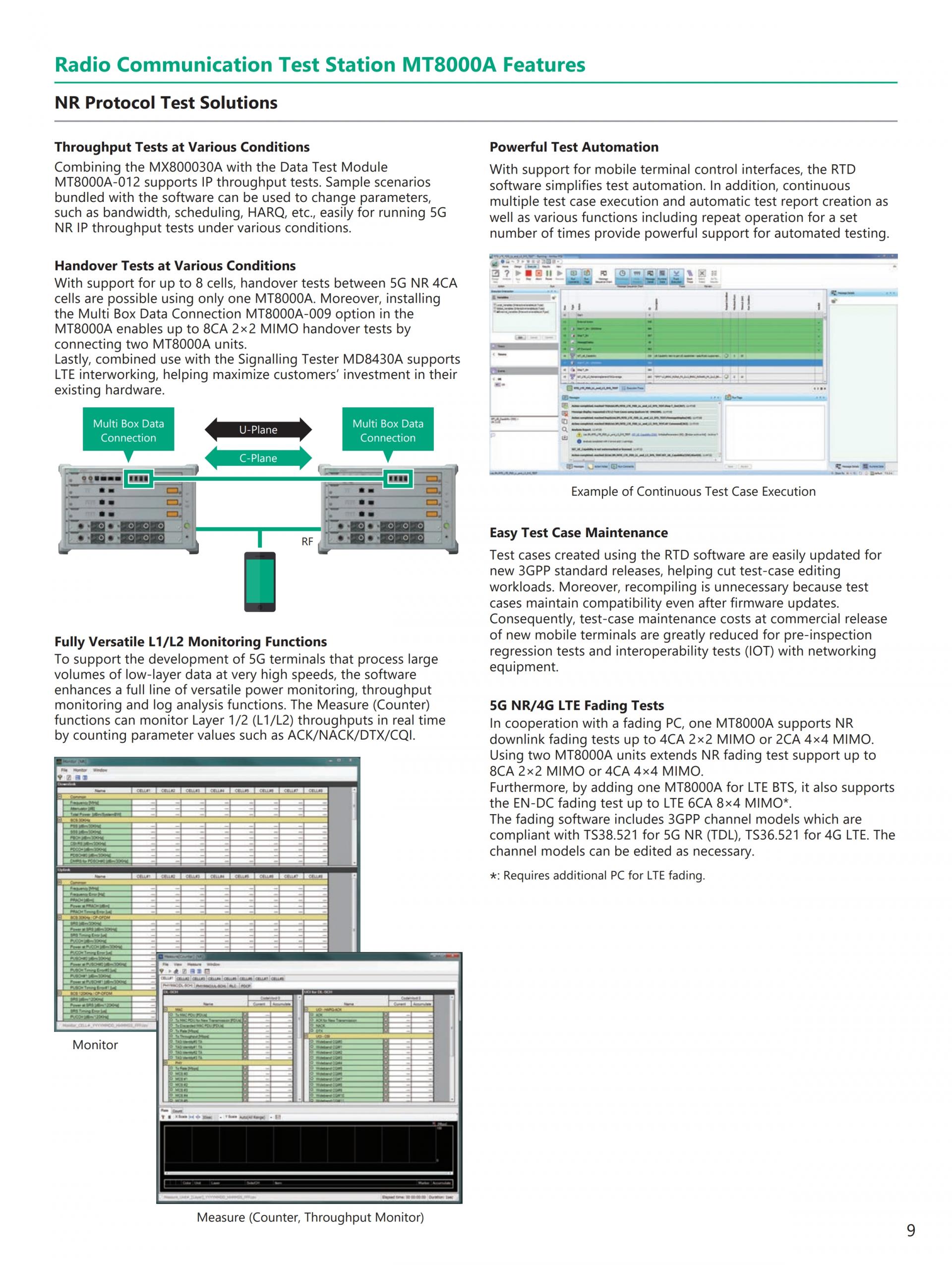 - Bluetooth v5부터 추가된 배터리 수명이 크게 향상되는 2Mbps Low Energy PHY(2LE) 및 통신 범위 500m 이상을 가능하게 하는 Bluetooth Long Range(BLR)에 관한 시험을 추가 옵션을 통해 지원할 수 있습니다.