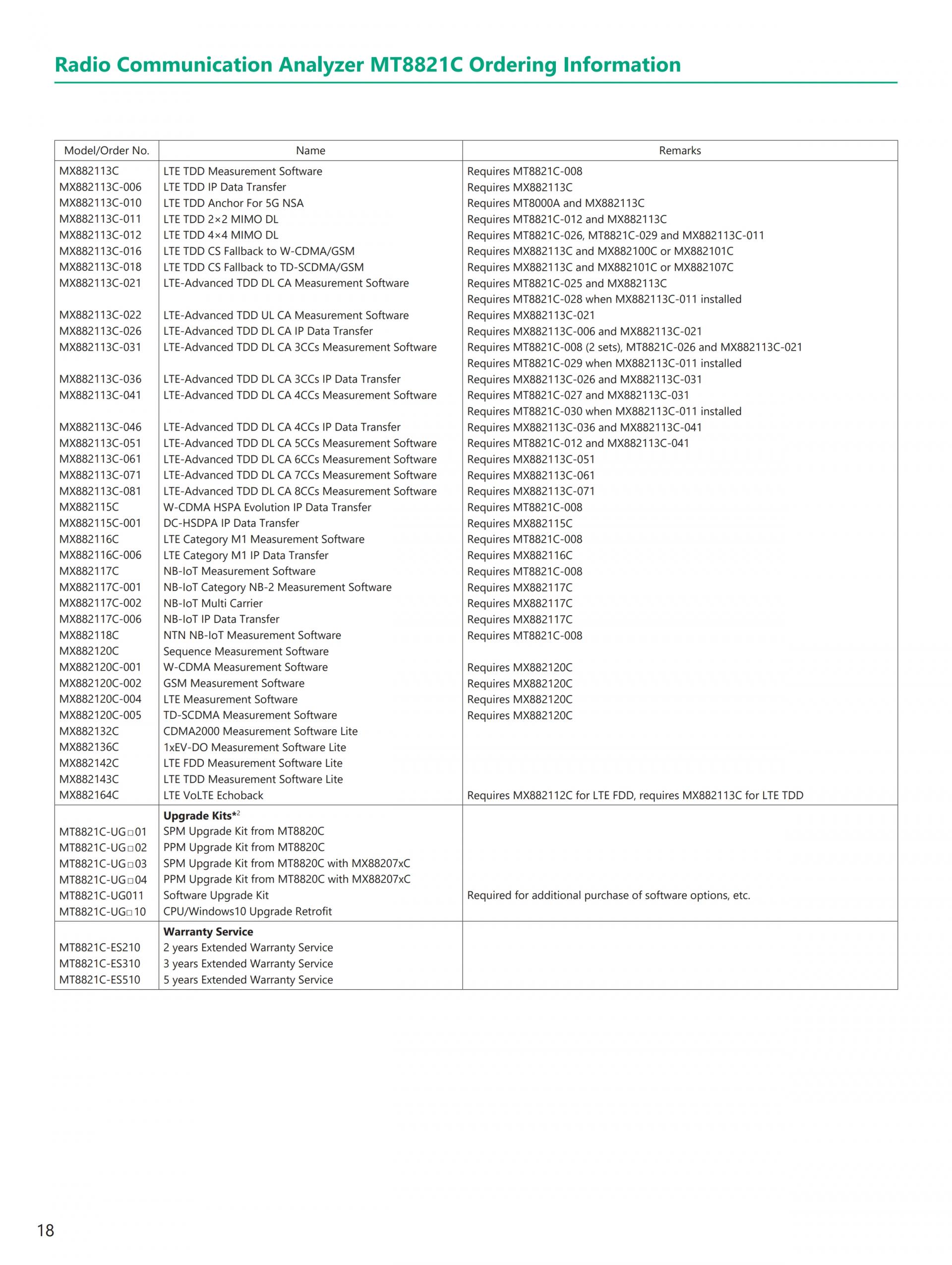 안리쓰는 MT8820C에서 MT8821C로의 업그레이드도 제공해서 기존의 MT8820C 하드웨어 및 소프트웨어를 최대한 활용함으로써 MT8820C에서의 이전 투자 효과를 최대화하고, MT8821C에 대한 비용을 절감합니다.