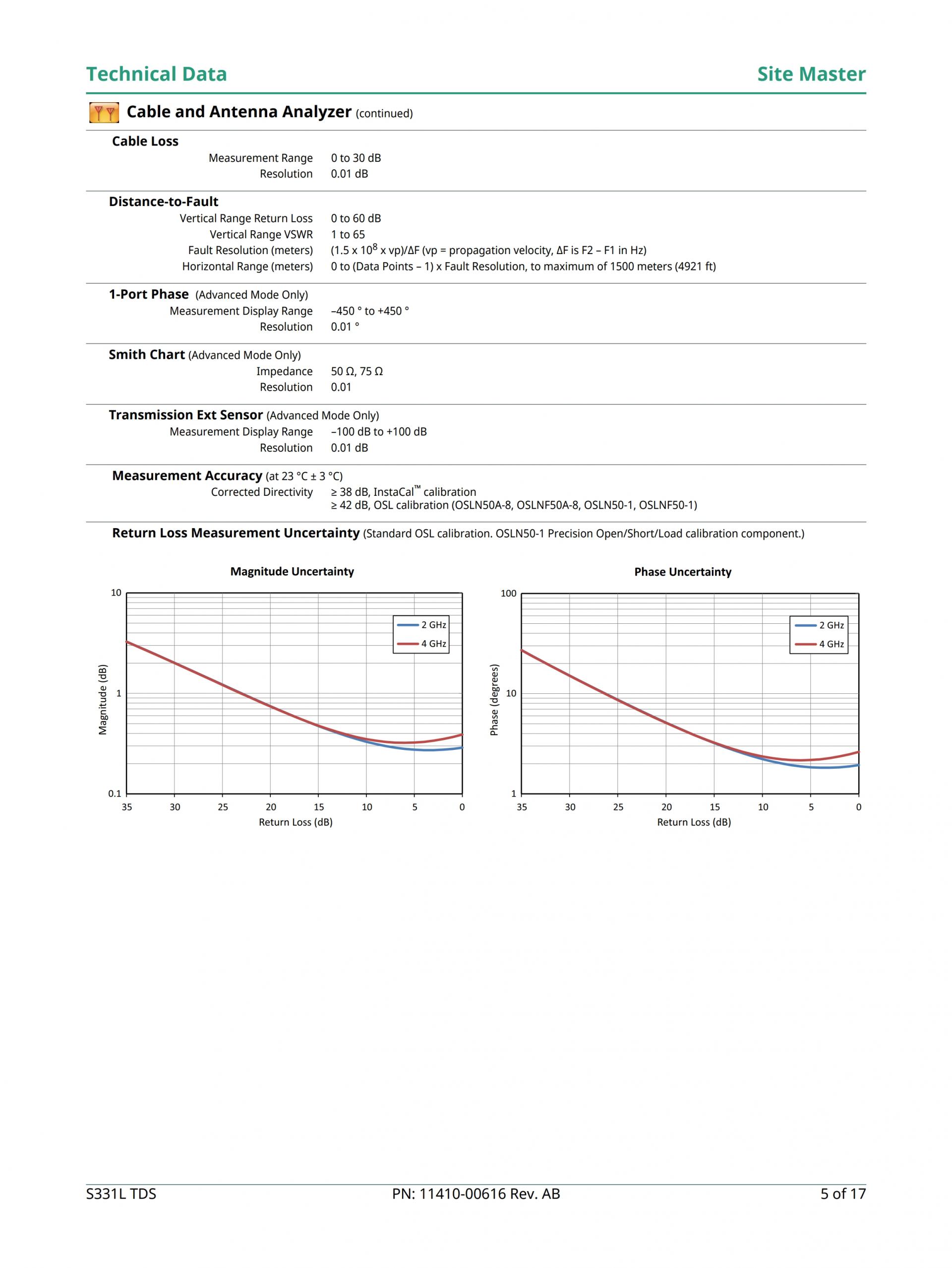 S331L Site Master™ Handheld Cable & Antenna Analyzer