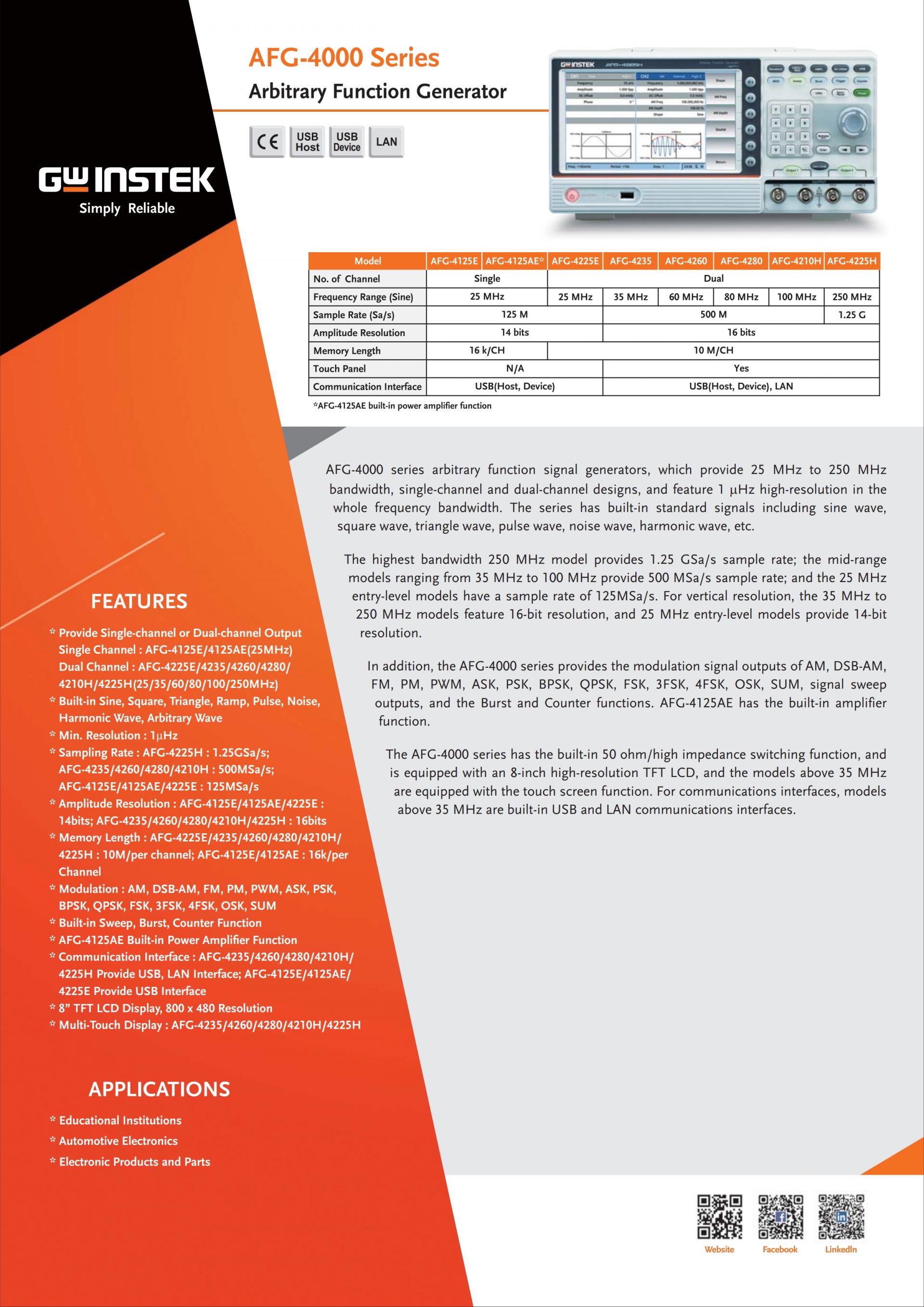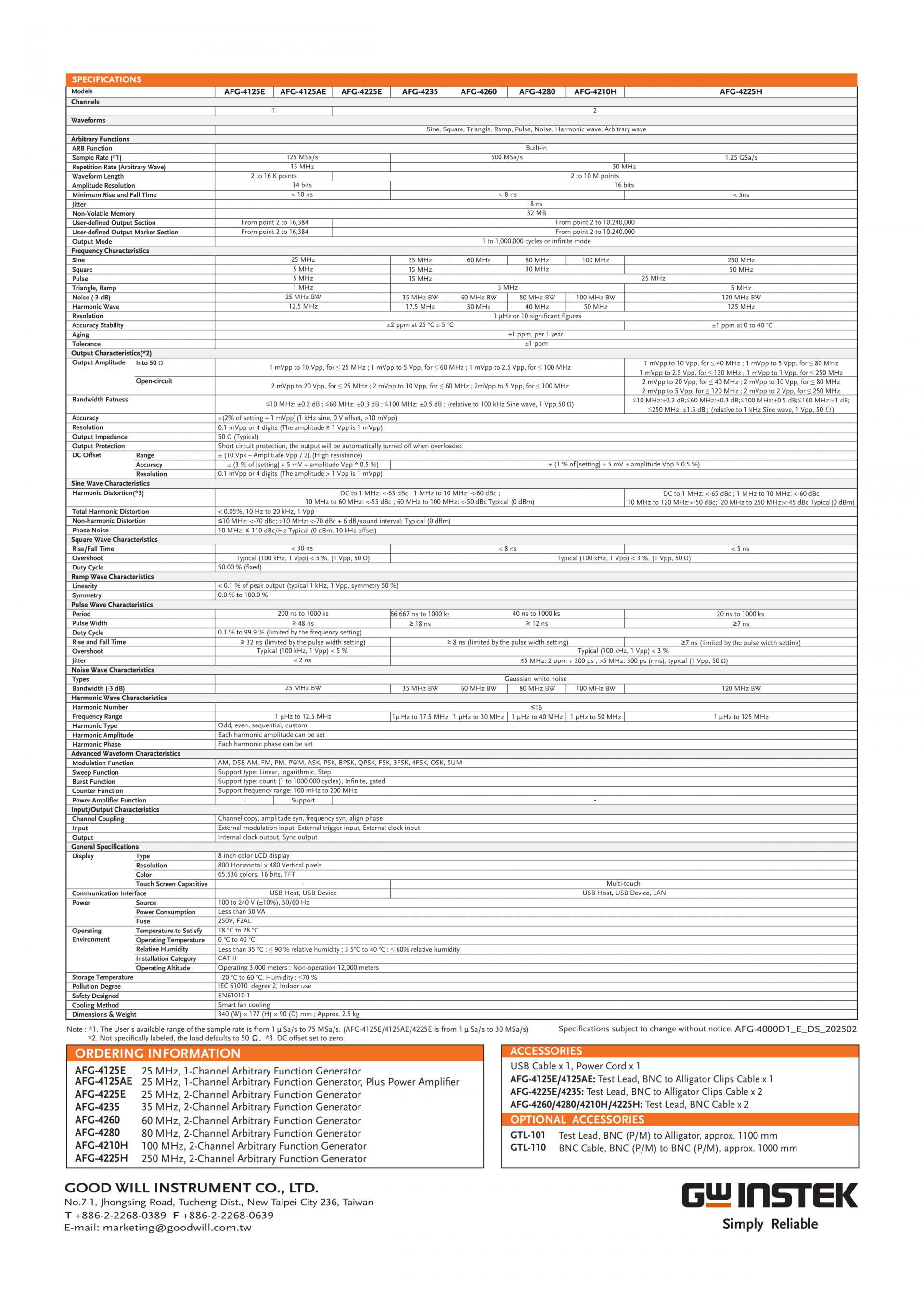 Dual Channel:AFG-4225E/4235/4260/4280/4210H/4225H (25/35/60/80/100/250MHz)
