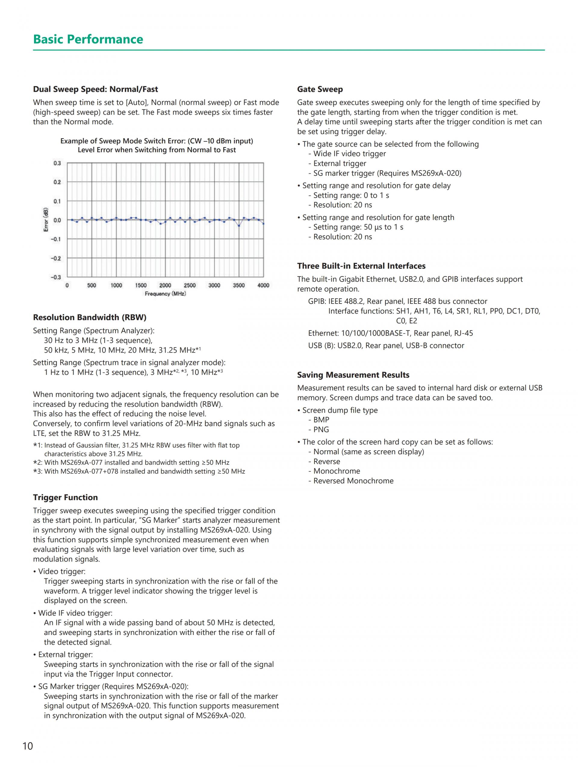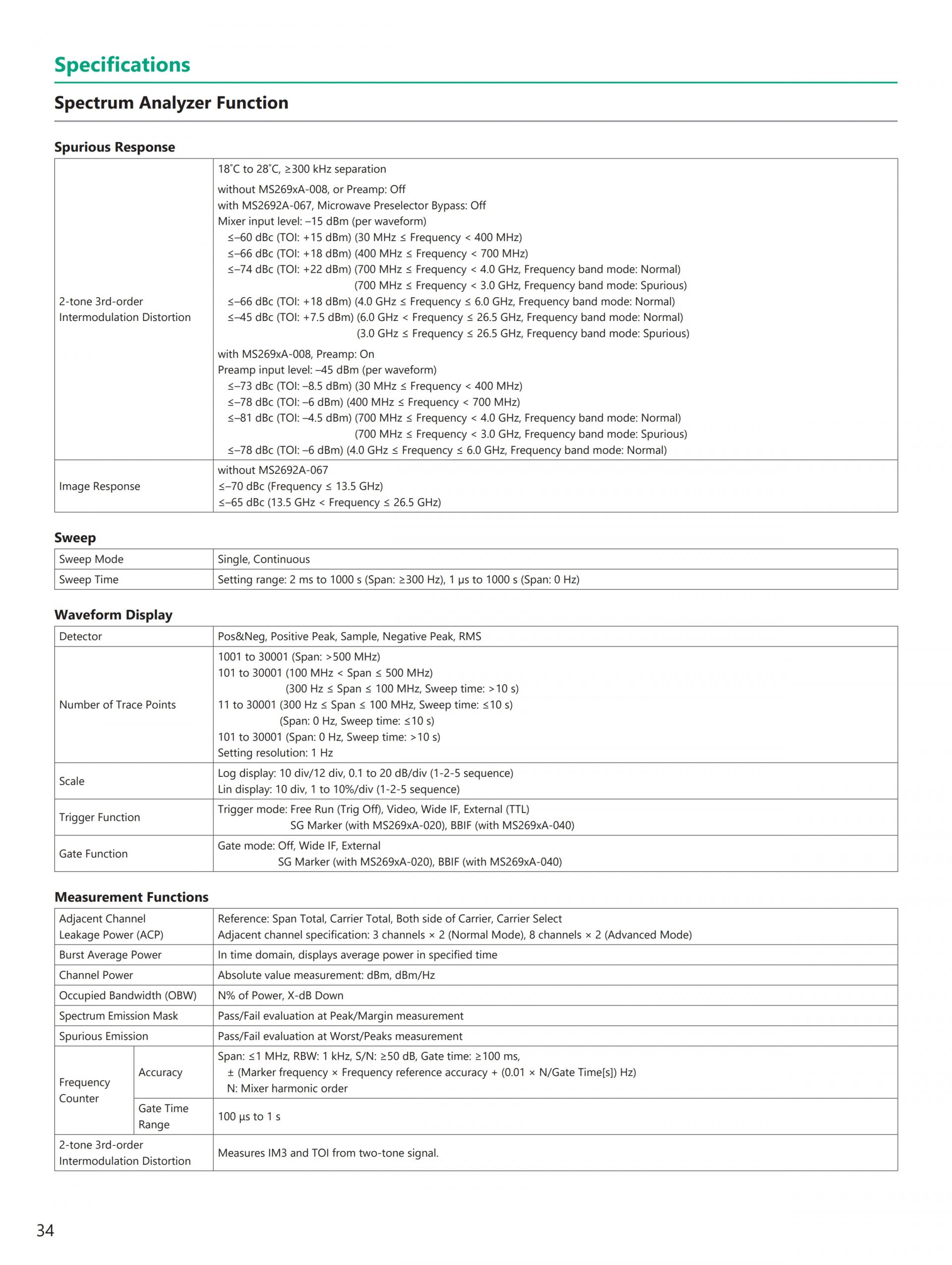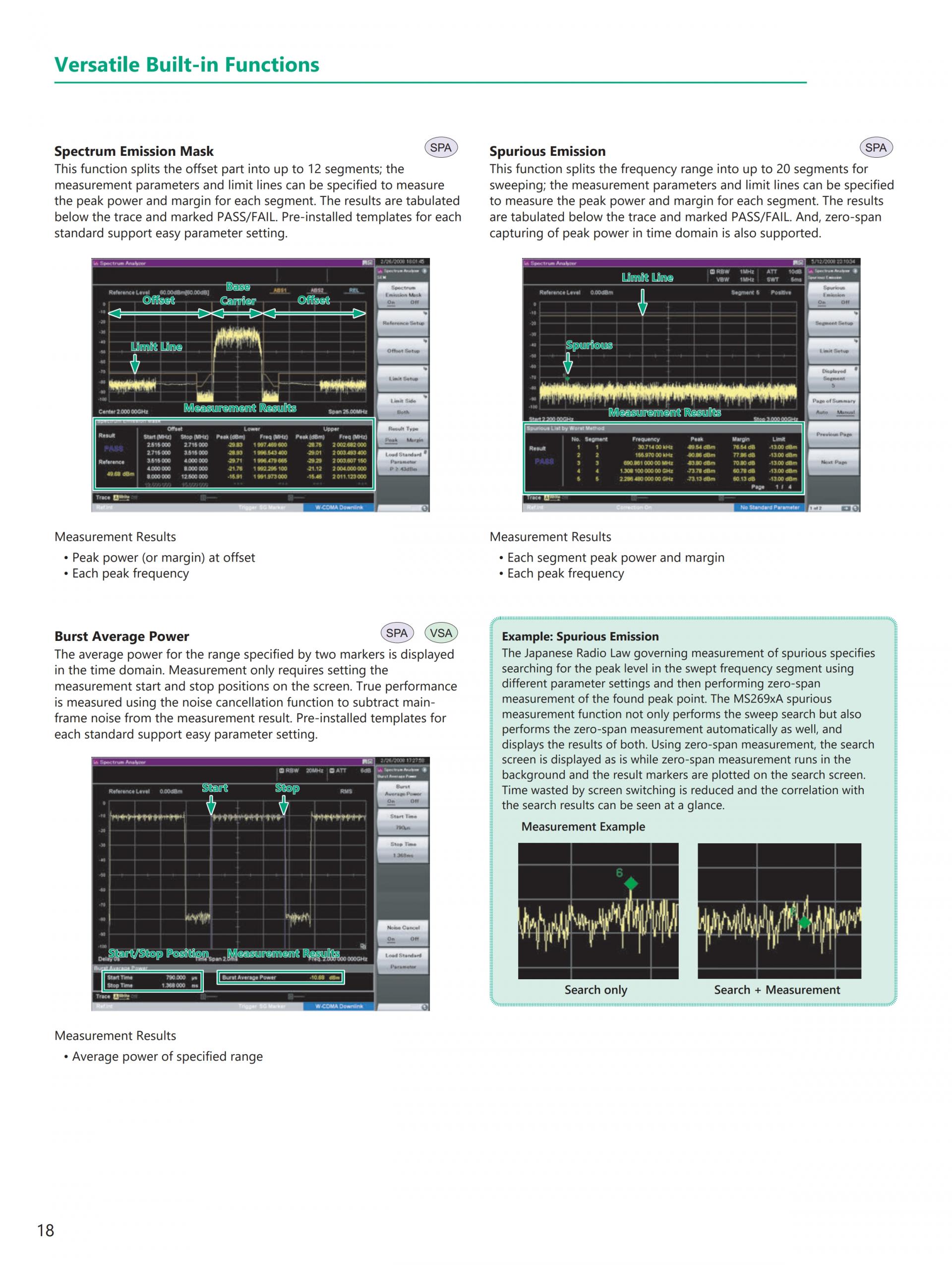 MS269xA 신호 분석기는 기본적으로31.25 MHz의 분석 대역폭을 지원하며, 하드웨어 옵션을 추가하면 대역폭을62.5 MHz/125 MHz까지 확장할 수 있습니다. 특허받은 보정 공정을 거치면, 다중점 진폭 보정과 위상 보정이 6 GHz의 폭에서 ±0.5 dB의 정확도를 이룹니다. 시중의 다른 어떤 분석기도 이 같은 사양을 충족하지 못합니다! 이 박스 제품은 어느 모로 보나 최고 수준입니다. 측정 신호의 폭도 가장 넓고, 최신 기술을 사용한 측정 속도도 예전보다 많이 빠릅니다. 모듈식 구조를 채택하여 측정 요건의 변화에 따라 박스를 업그레이드할 수 있습니다.