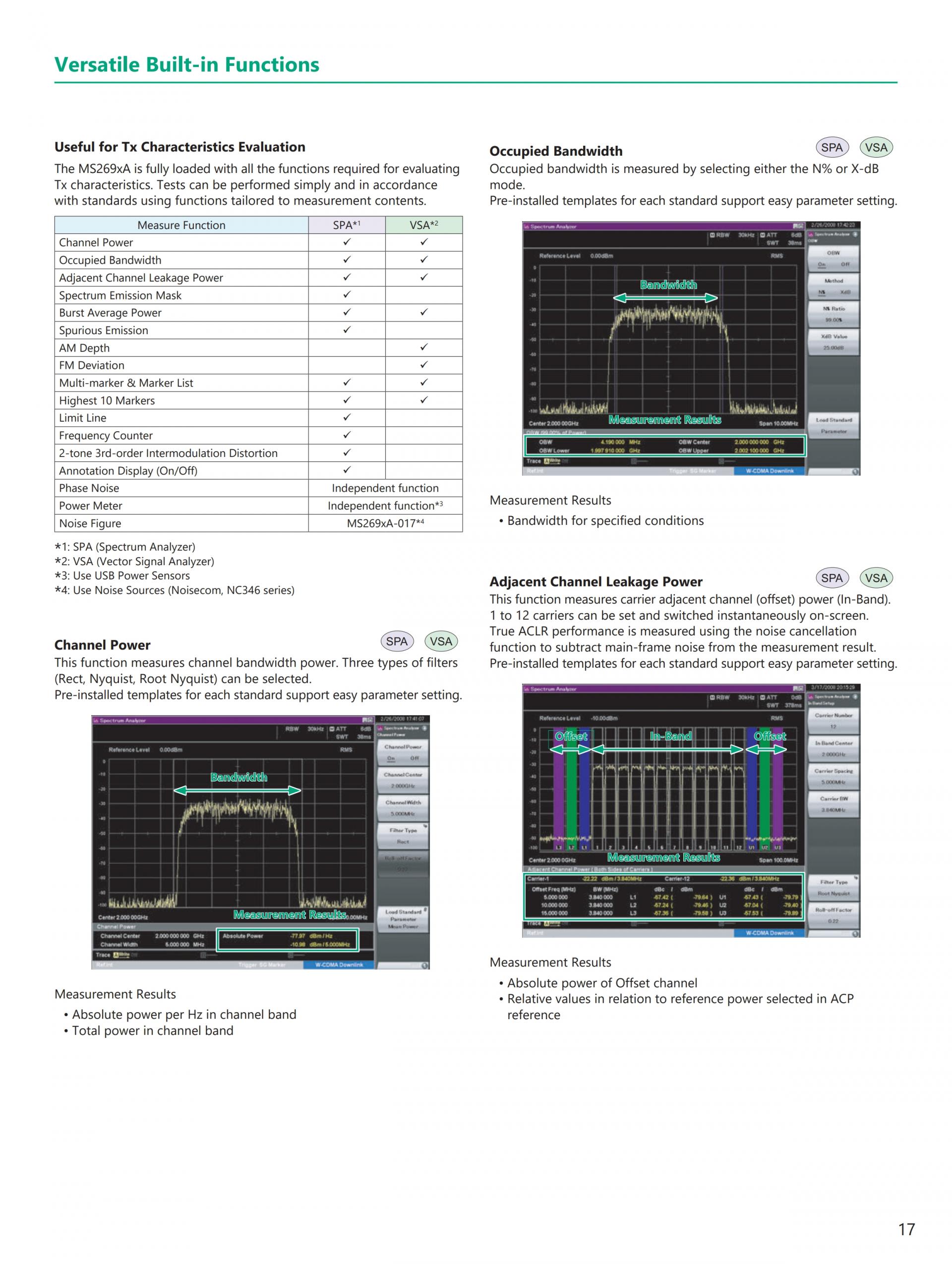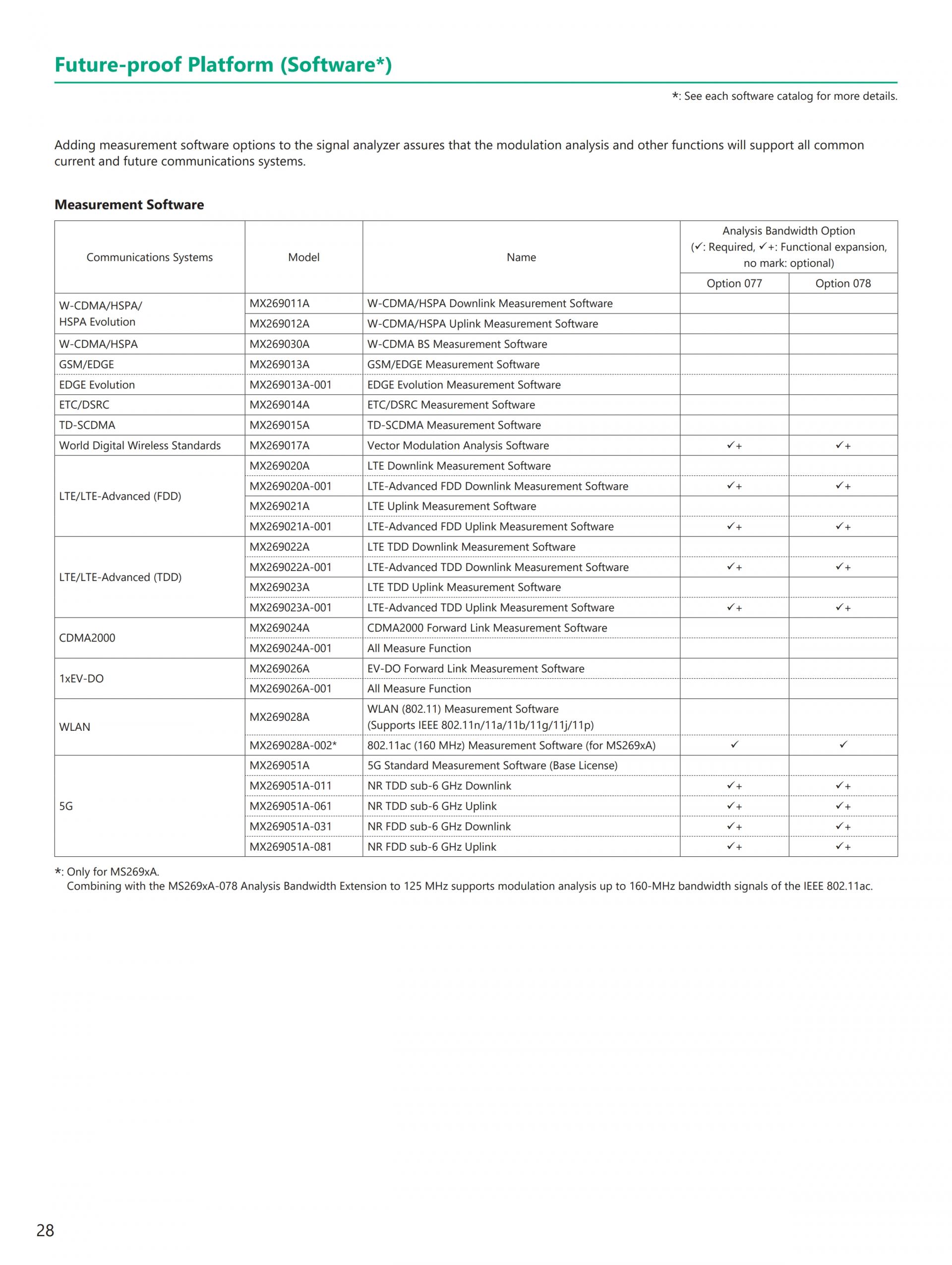 MS269xA 시리즈 신호 분석기는 차세대 통신 분야를 위한 최신의 고성능 신호 분석기입니다. MS269xA 시리즈 신호 분석기의 기본 장치는 스웹트 스펙트럼 분석, FFT 신호 분석, 정밀 디지타이저 기능을 포함합니다. 옵션을 추가하여 신호 발생기를 넣으면, 플러그-앤-플레이 방식의 간편한 원박스 솔루션으로 기계가 변신합니다.