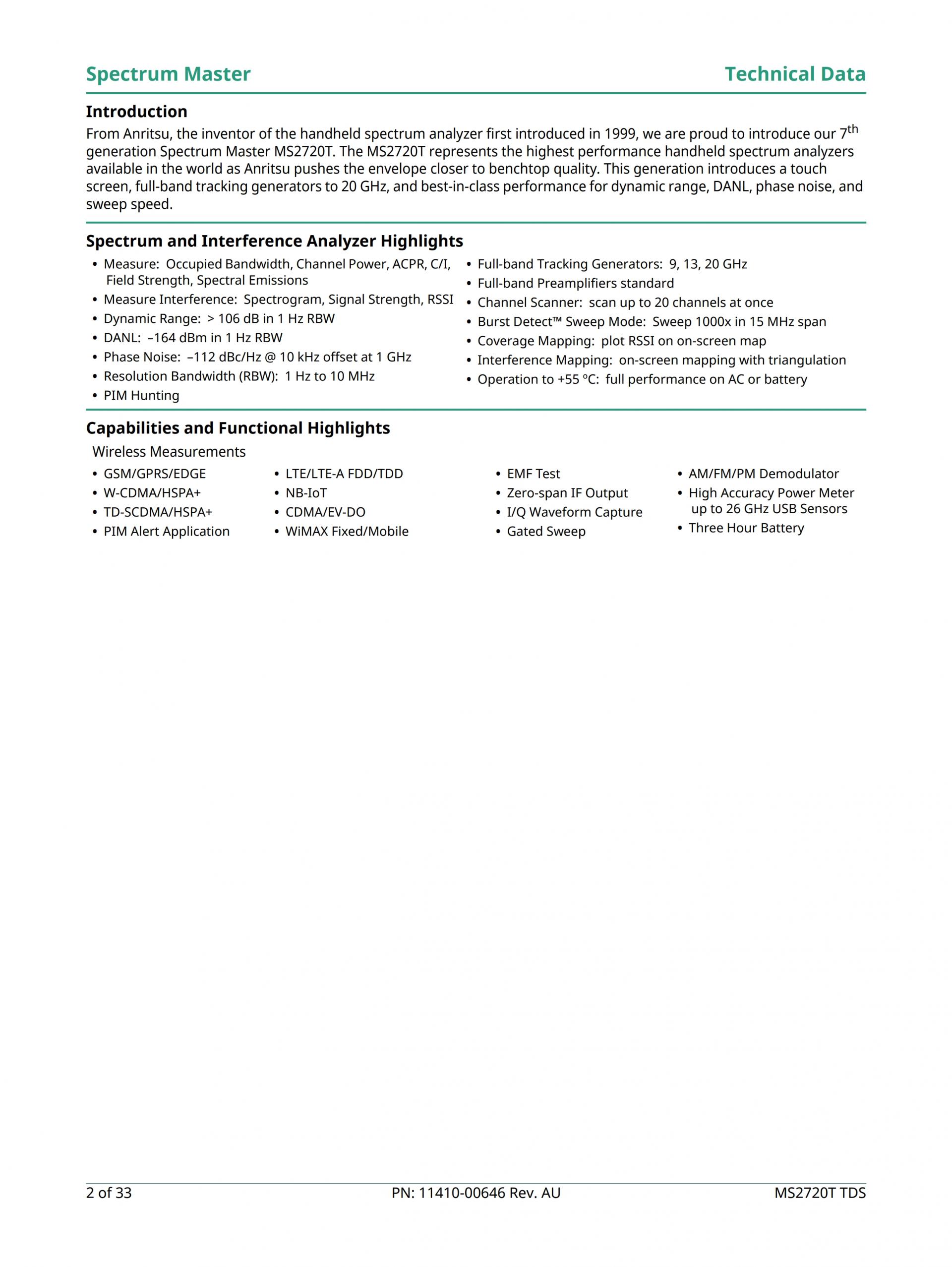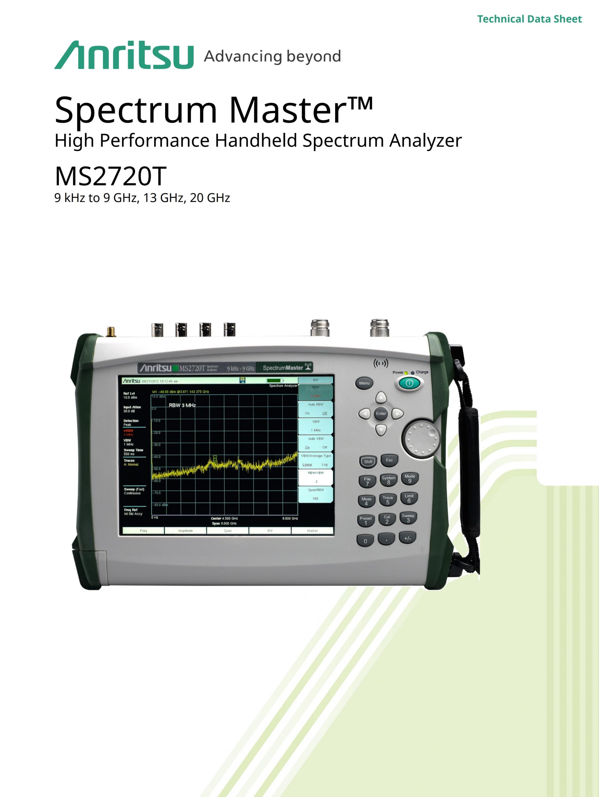 Anritsu의 최신 세대 핸드헬드 스펙트럼 분석기는 MS2720T Spectrum Master입니다. 이 제품은 당사 제품 중 최고 성능의 소형 스펙트럼 분석기입니다. 새로운 기능과 옵션으로 사용자에게 더 나은 가치와 속도를 제공합니다.