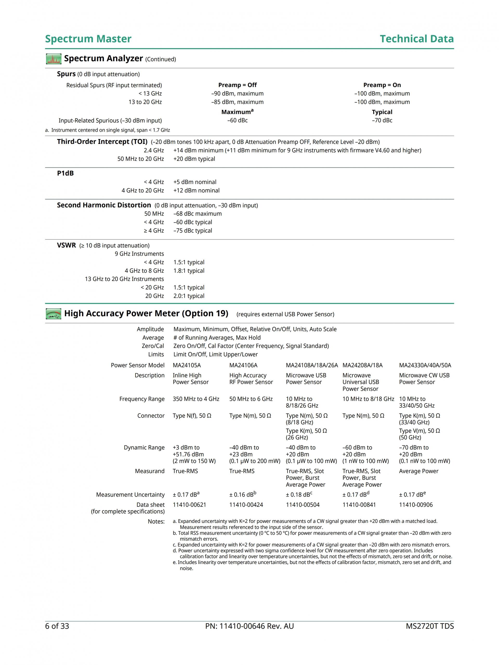 - 20 GHz의 트래킹 발생기 옵션