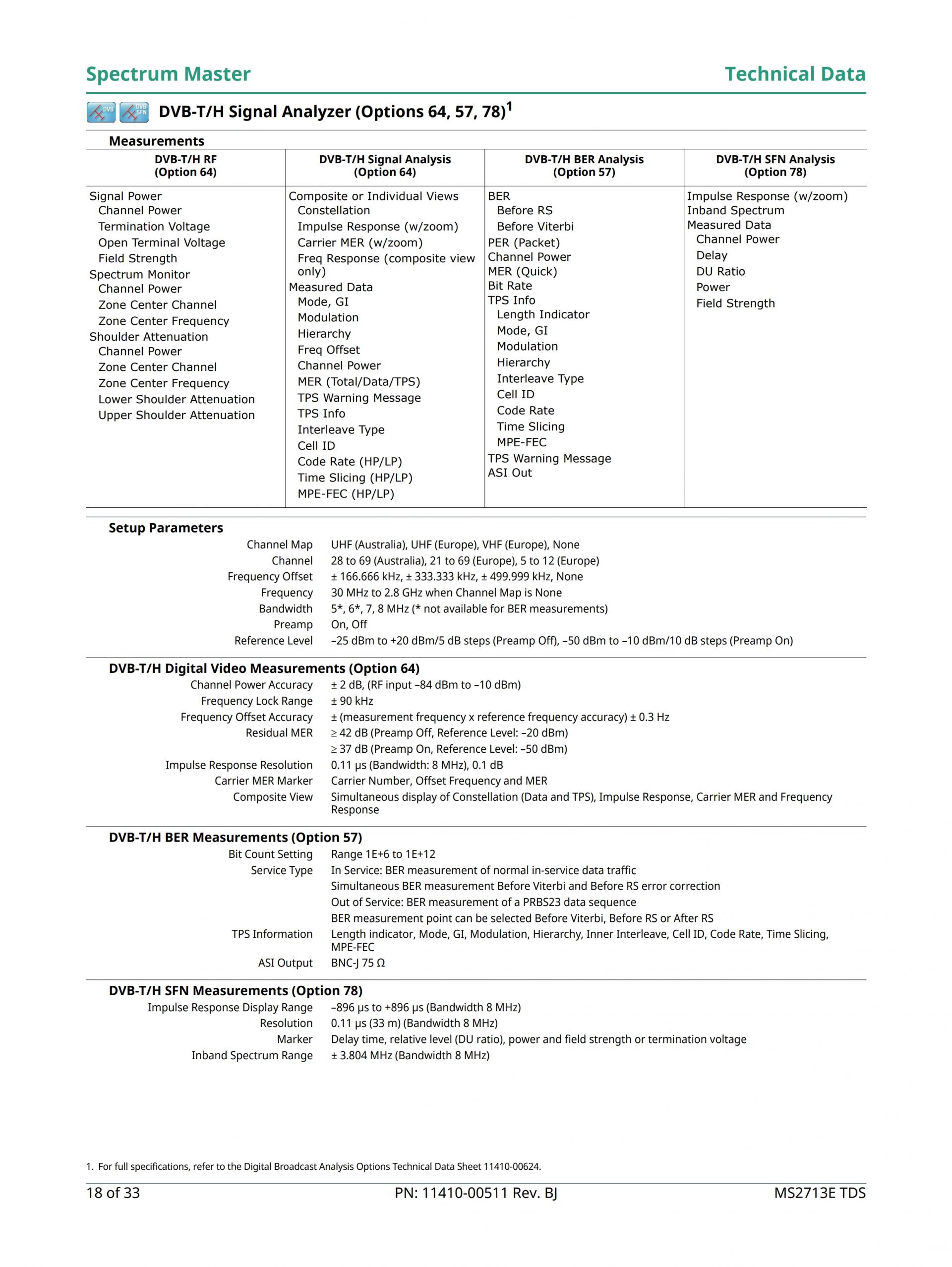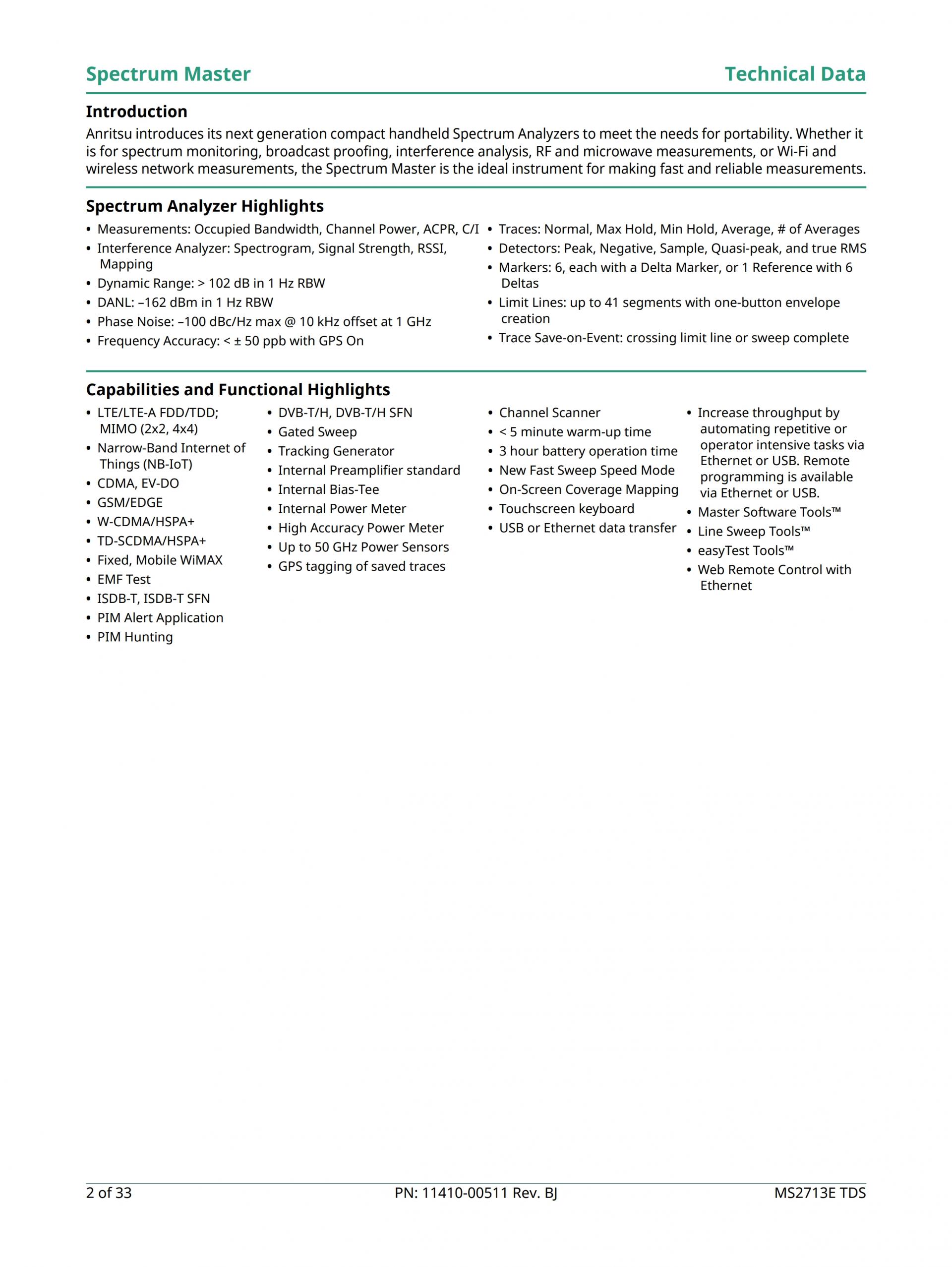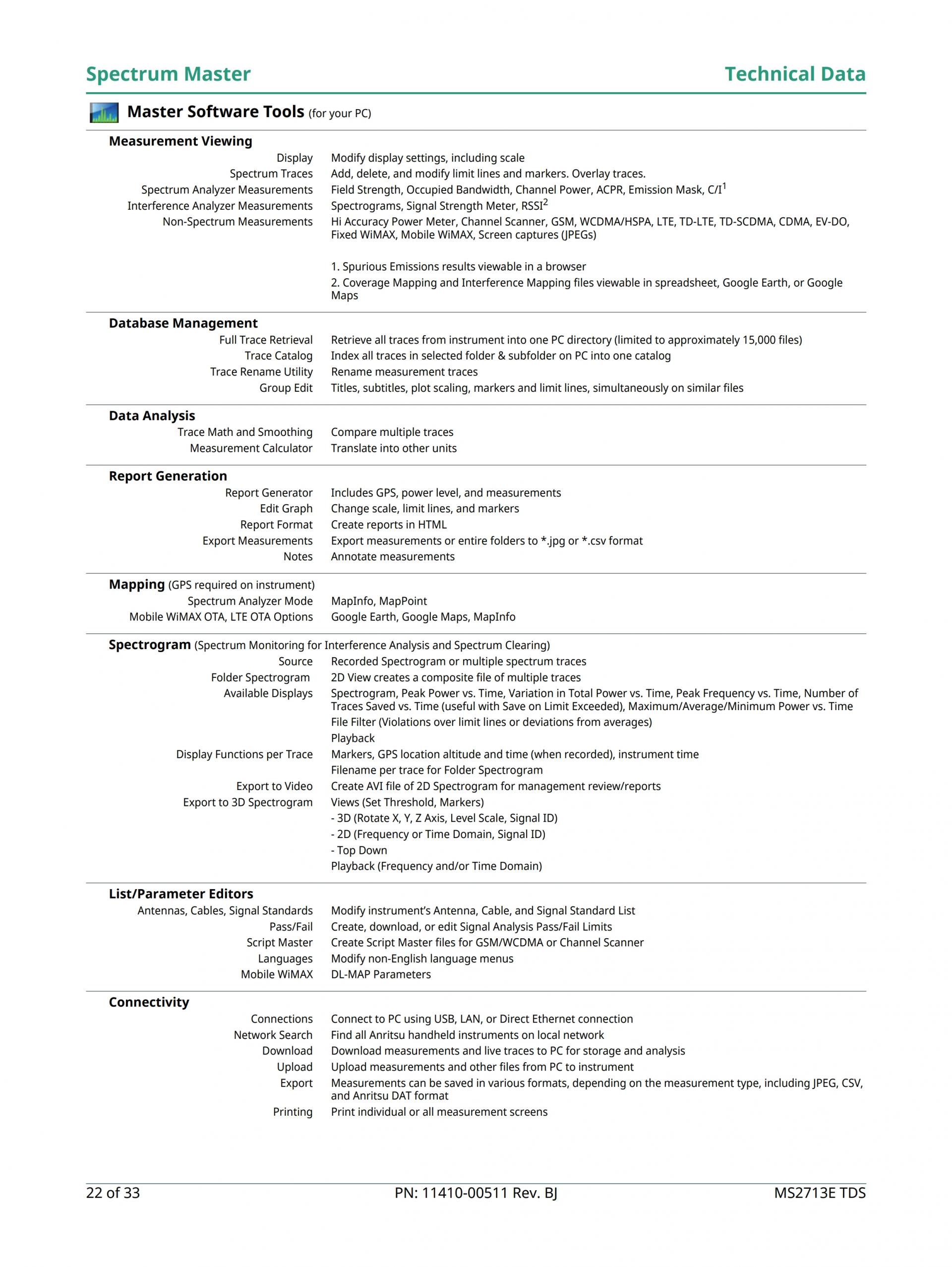The Spectrum Master MS2713E was designed to handle the most punishing field conditions, allowing you to monitor, locate, identify, and analyze a broad range of cellular, 2G/3G/4G, land mobile radio, Wi-Fi, and broadcast signals. The multifunctional Spectrum Master eliminates the need for you to learn and carry multiple instruments when locating and identifying signals over wide frequency ranges.