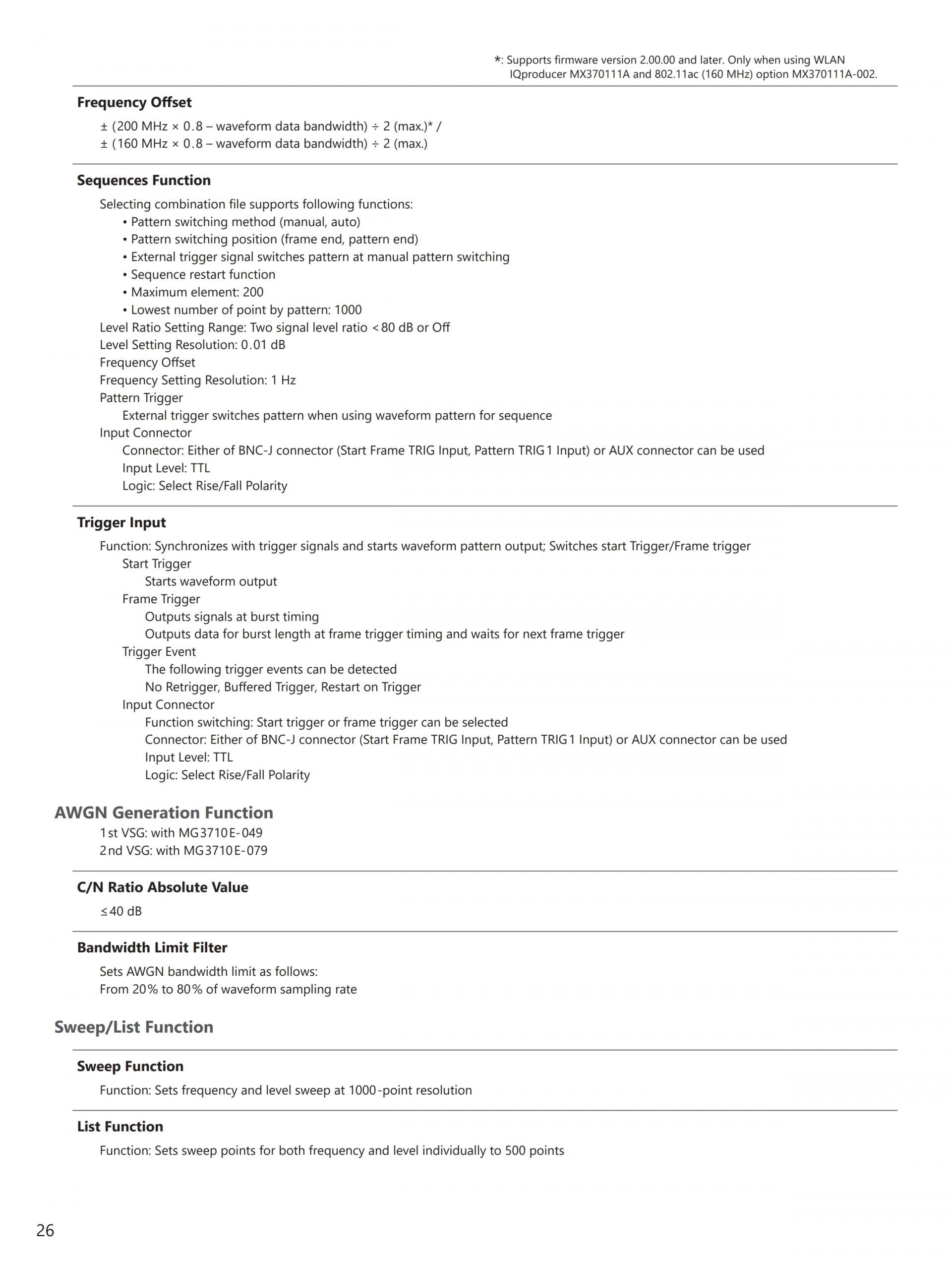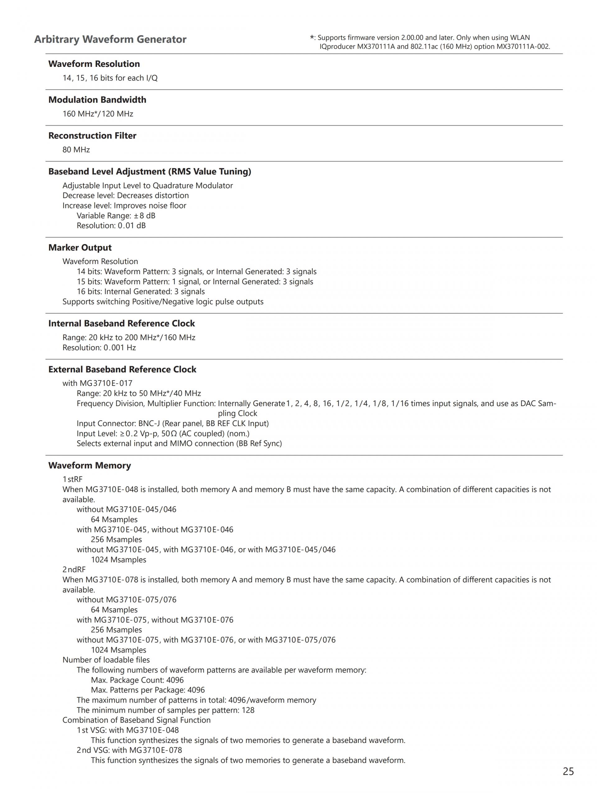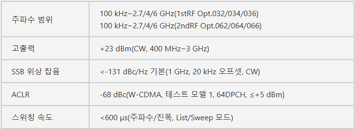 - RF 대역: 160 MHz*/120 MHz 기저대 발생기 내장