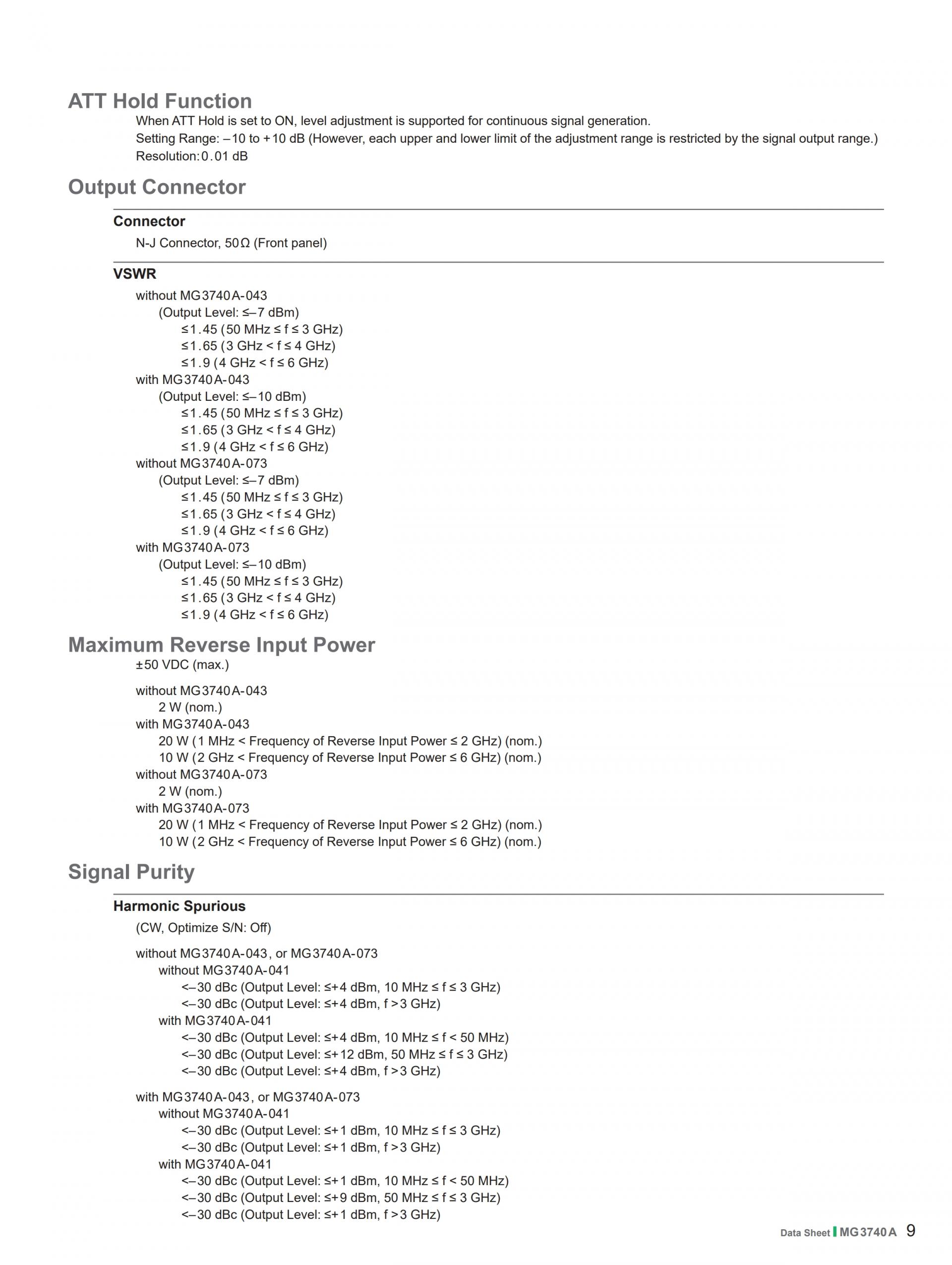 - Analog Signal Generator, with excellent RF specifications, including Single Side Band phase noise, output level, and versatile AM, FM, ΦM, and Pulse modulation functions