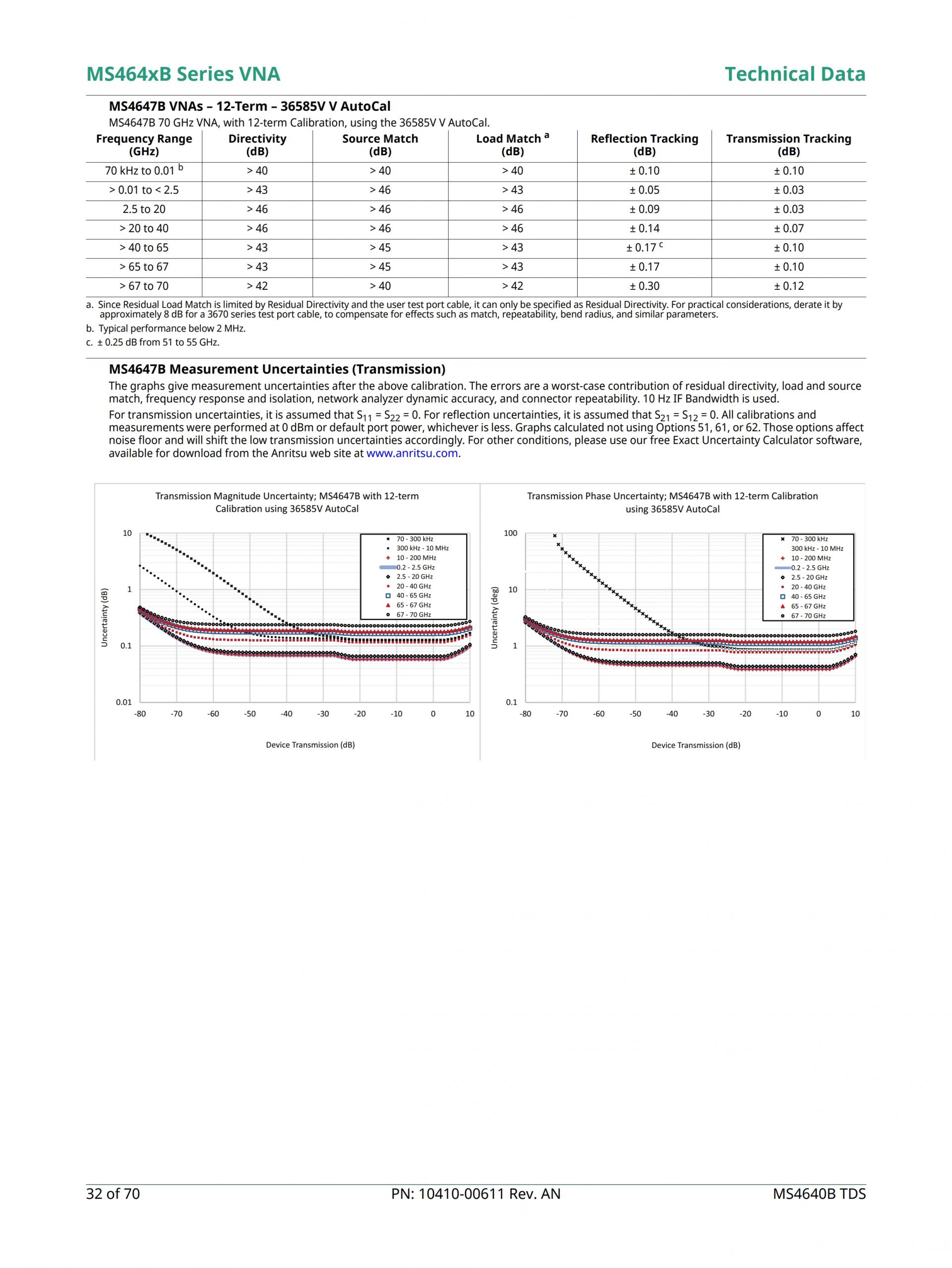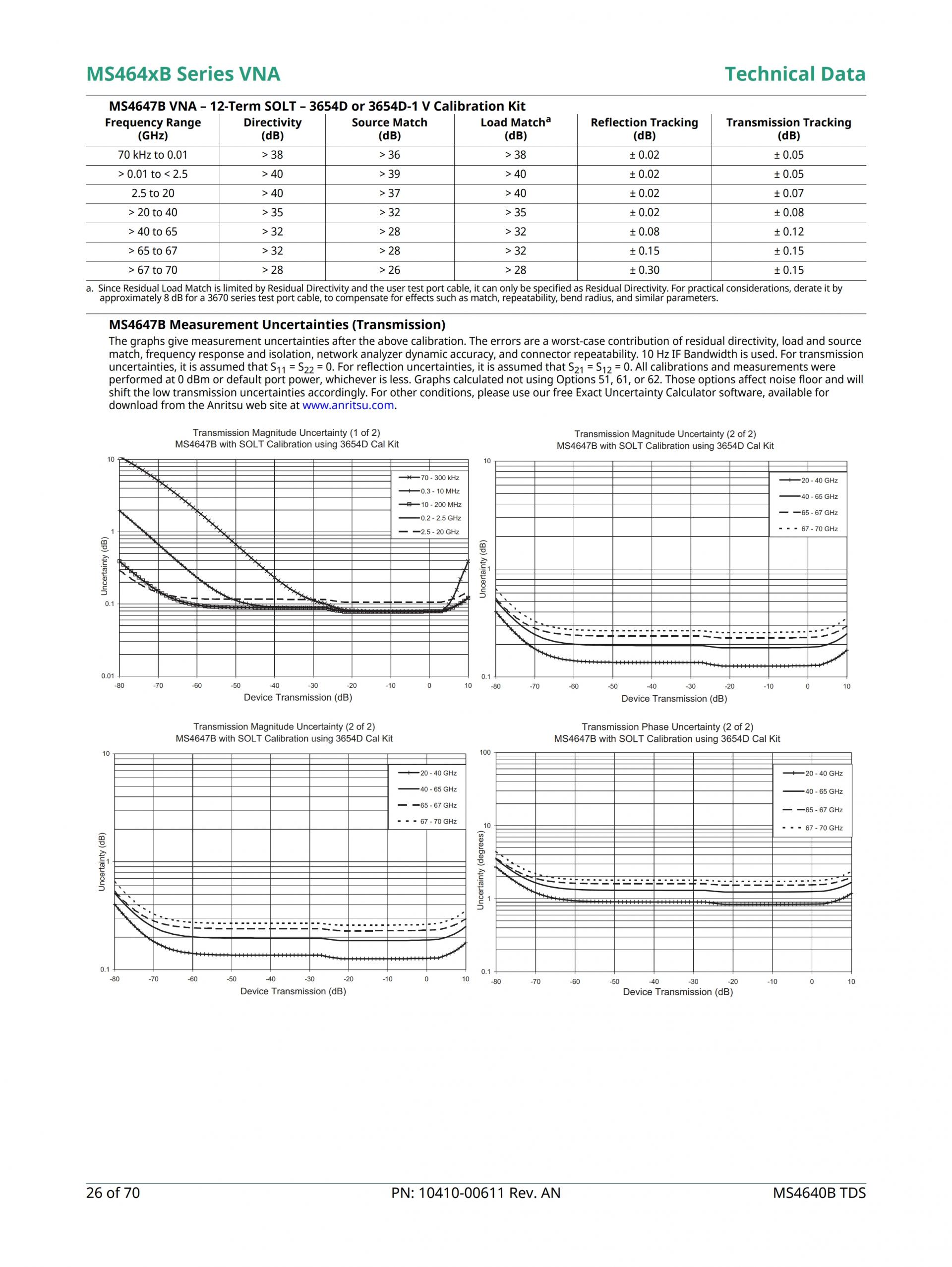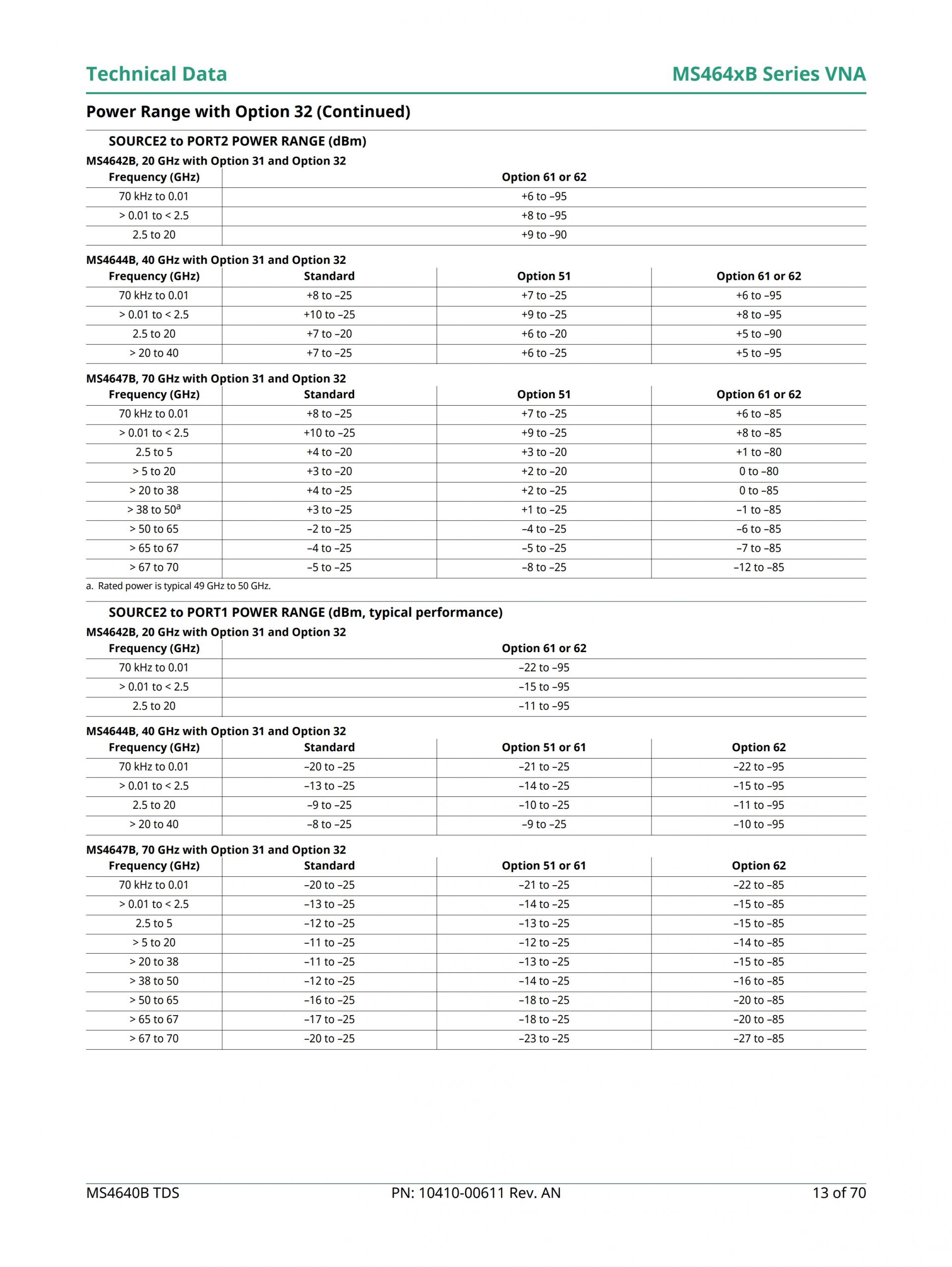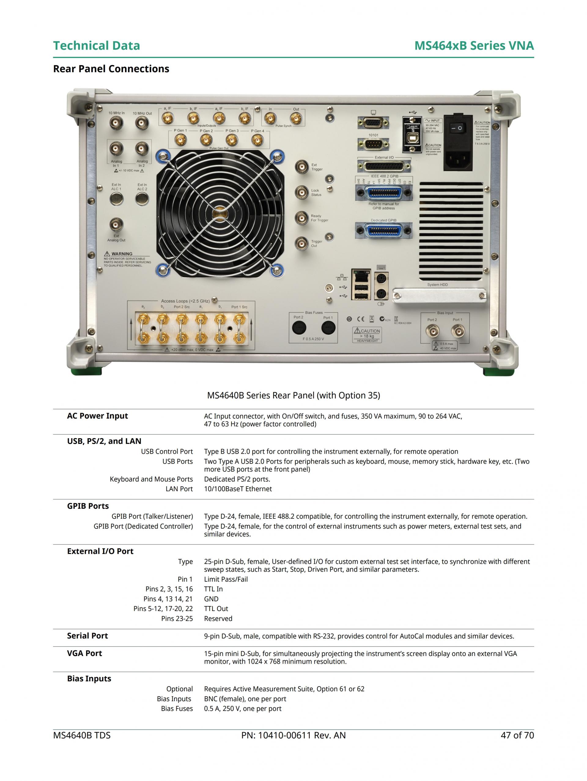 MS4647B – (Optional 70 kHz) 10 MHz to 70 GHz