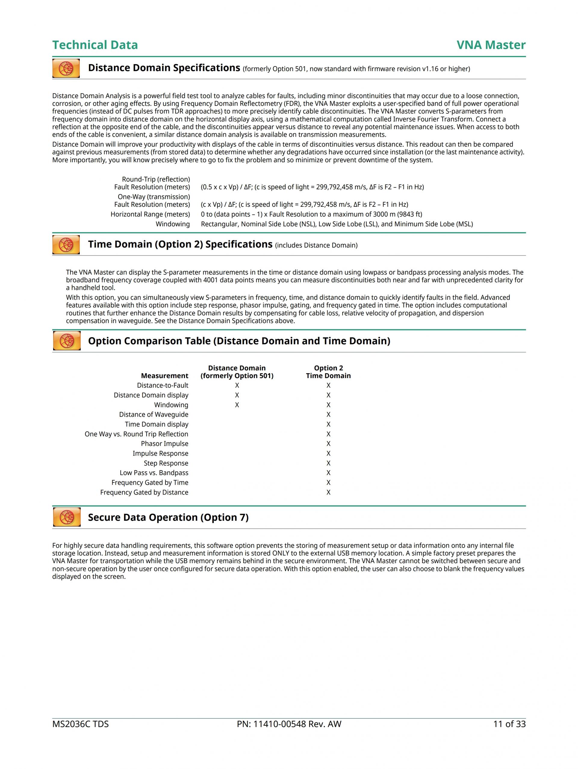 - 정밀한 시간 또는 거리 영역 진단을 위한 시간 영역 옵션, 게이트된 시간 영역, LP 처리, 페이서 임펄스 모드 포함