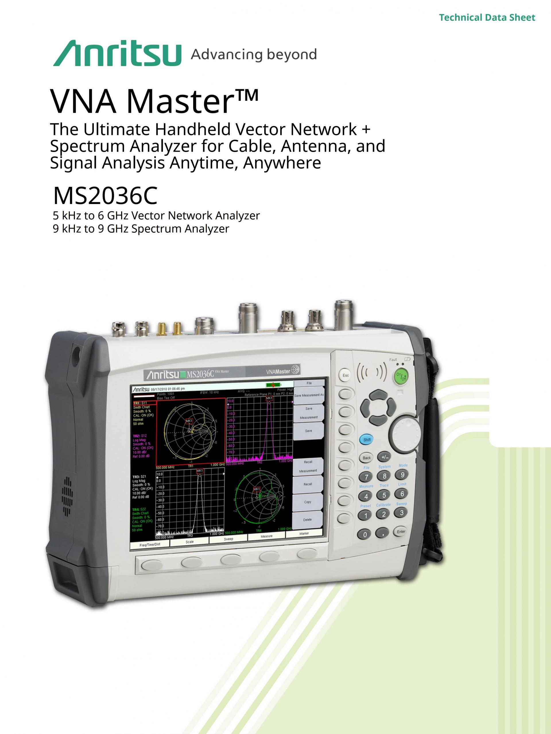Anritsu VNA Master MS2036C는 언제 어디서든 2-포트, 2-경로 측정을 지원하는 업계 최고 성능의 핸드헬드 솔루션입니다. 이 제품은 특히, 정확한 벡터 정정 2-포트 크기, 위상 및 거리 측정을 통해 현장에서 복잡한 케이블 및 안테나 측정 요구사항을 해결합니다. MS2036C는 5kHz-6GHz 주파수 대역을 지원하는데, 여기에는 광범위한 무선 주파수 통신 시스템뿐 아니라 다수의 레이더 및 마이크로파 통신 시스템, 동축 및 도파관 모두가 포함되어 있습니다.