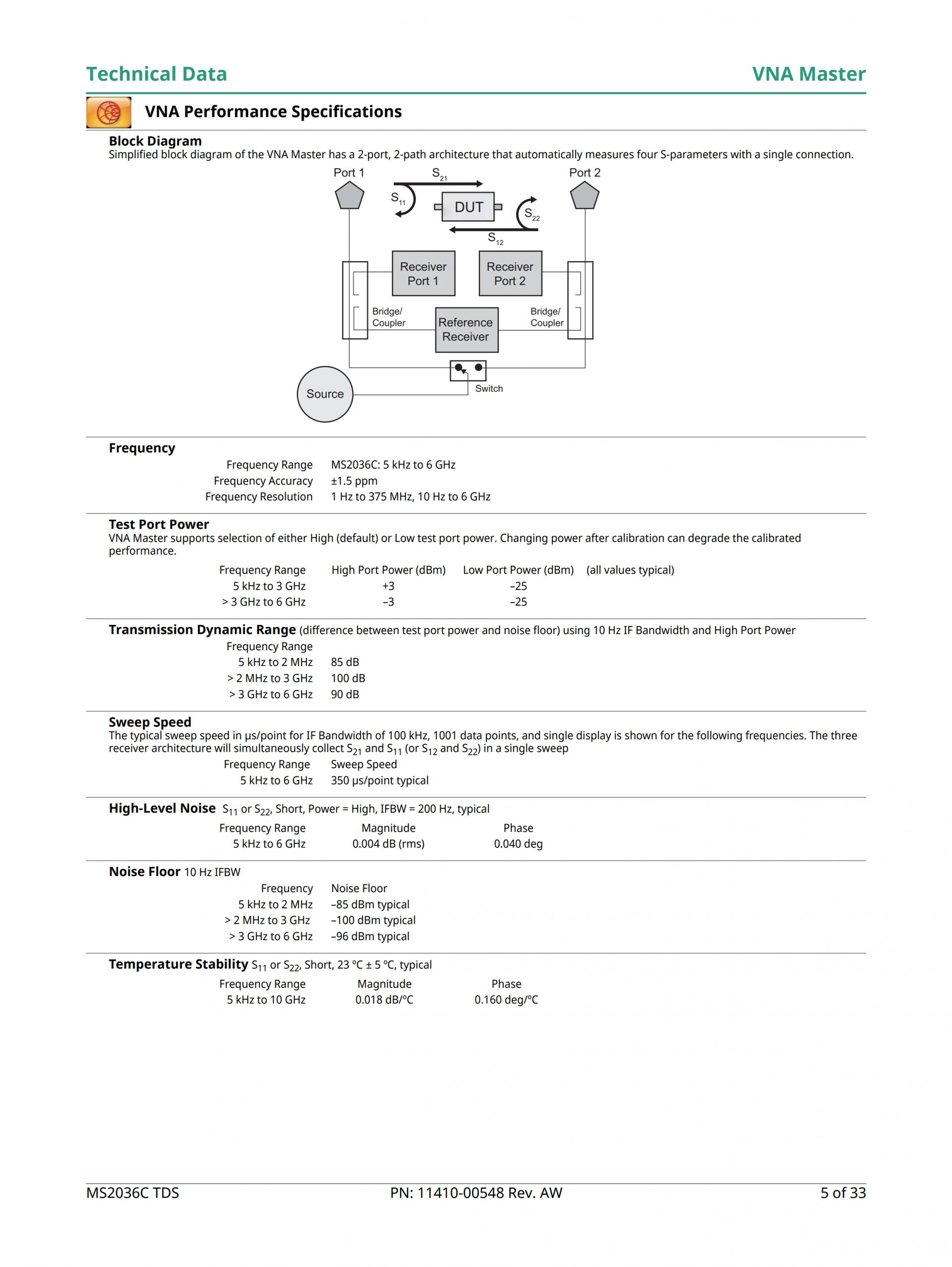 - 활성 포트 2개, 완전 역전 VNA; 단일 연결로 모든 S-매개 변수를 측정 및 표시