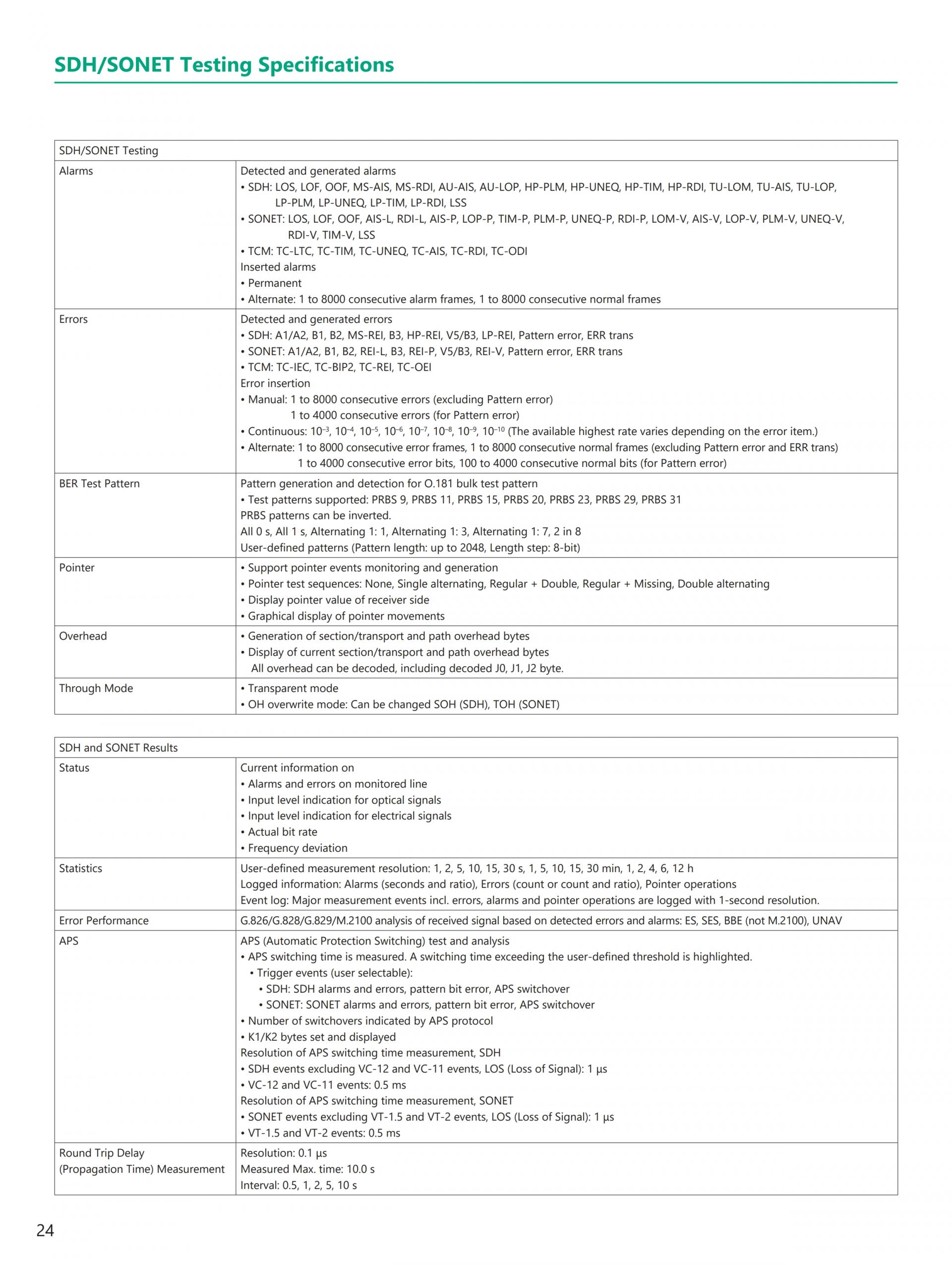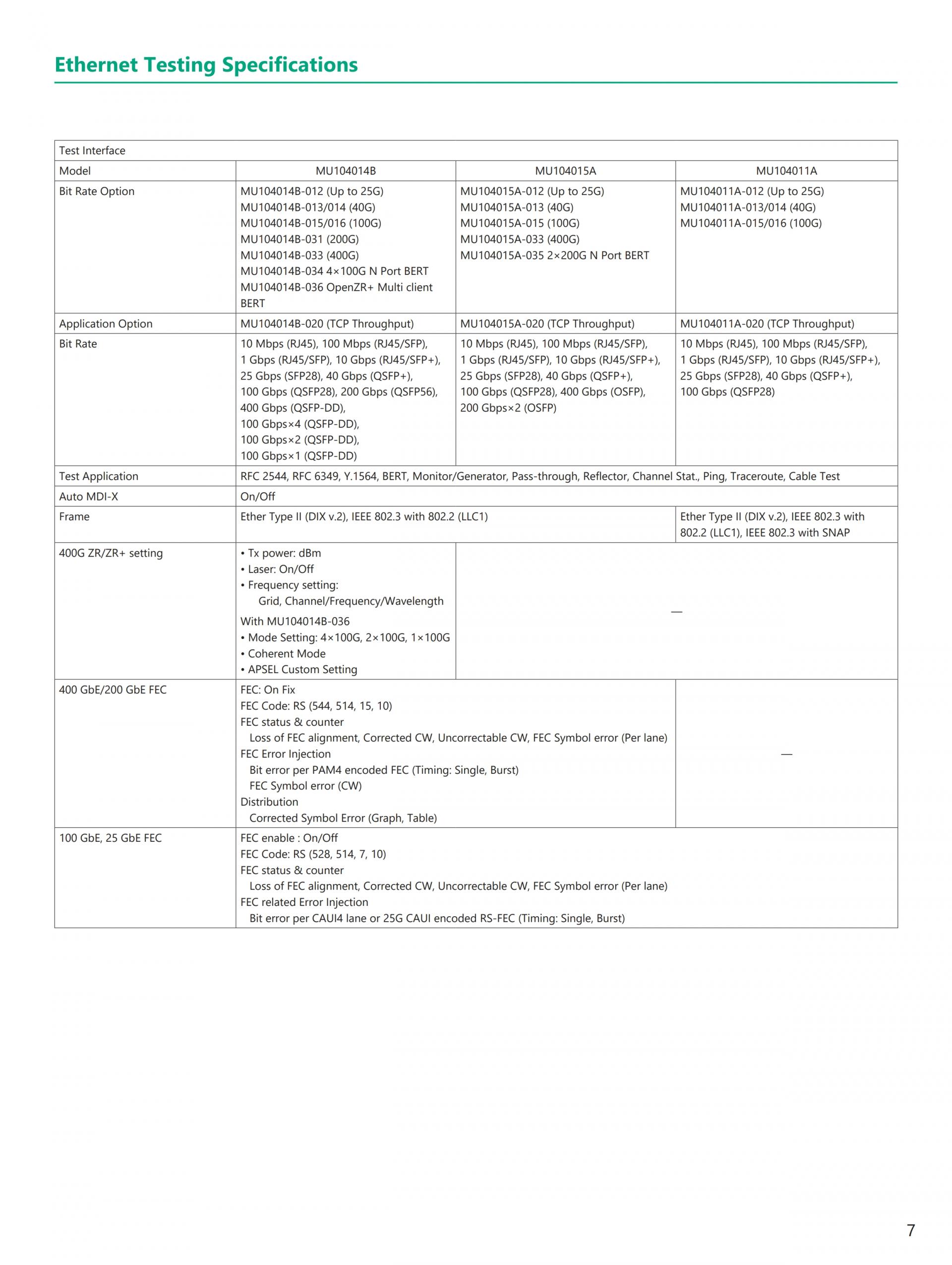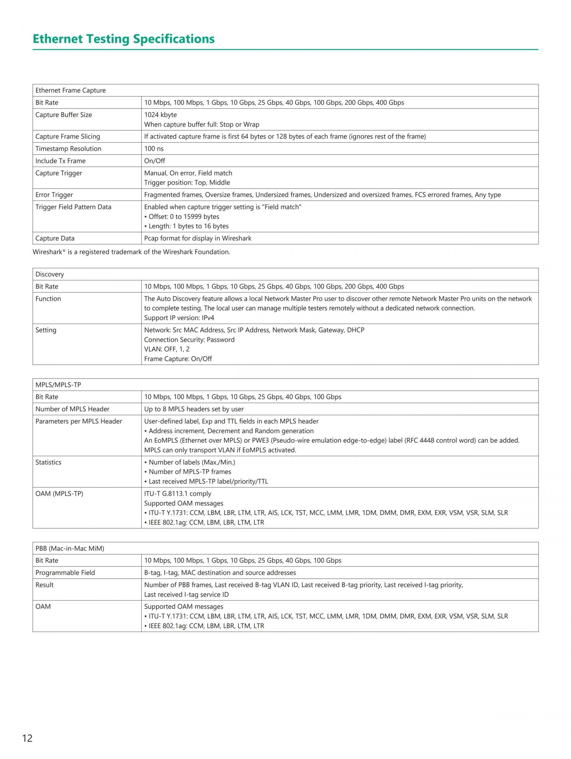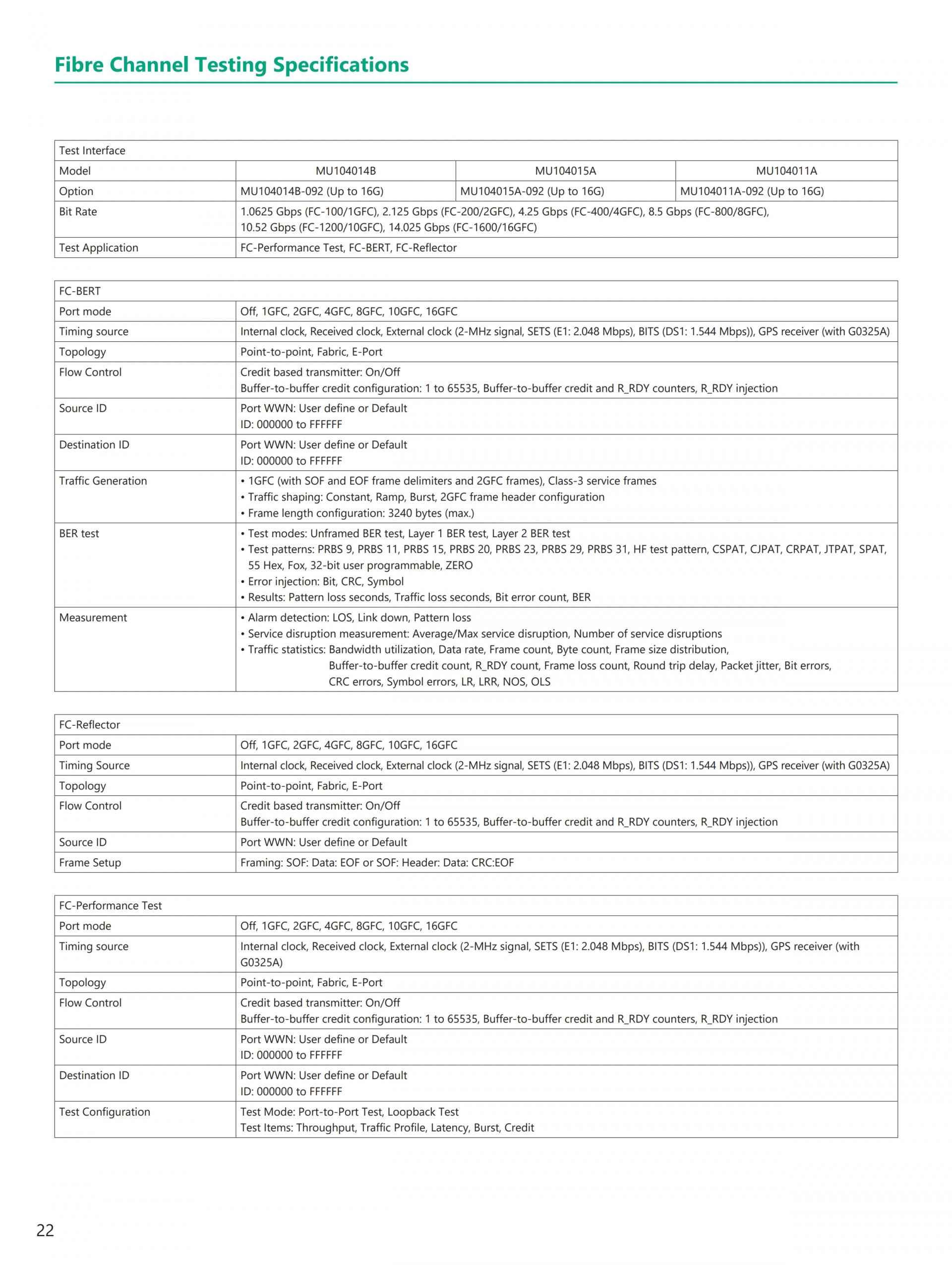 - 현재(이더넷, eCPRI/IEEE1914.3/CPRI/OBSAI, OTN, 파이버 채널) 및 Legacy(SONET/SDH) 기술 지원 전체 이더넷 벤치마크 테스트 제품군 RFC2544, Y.1564, RFC6349