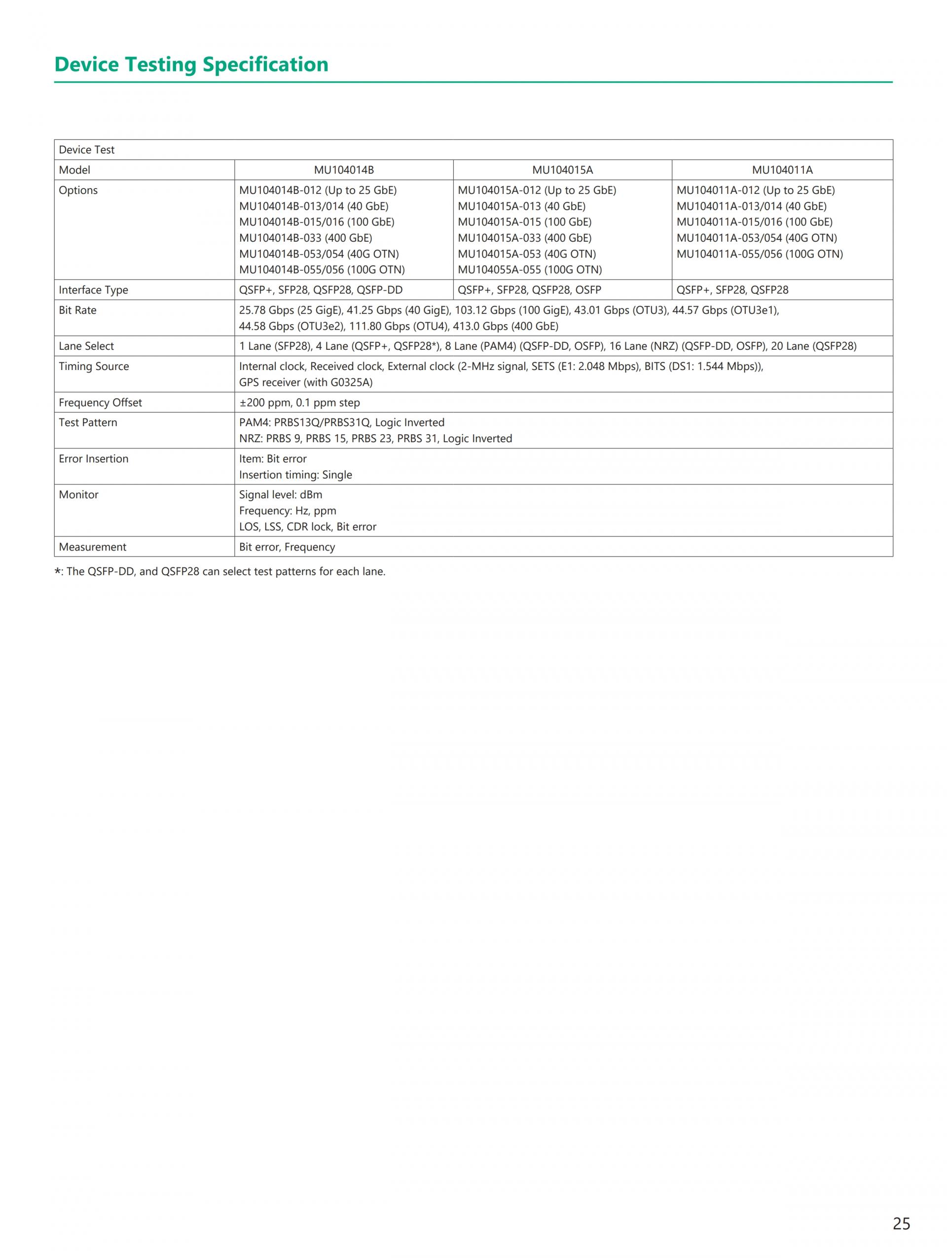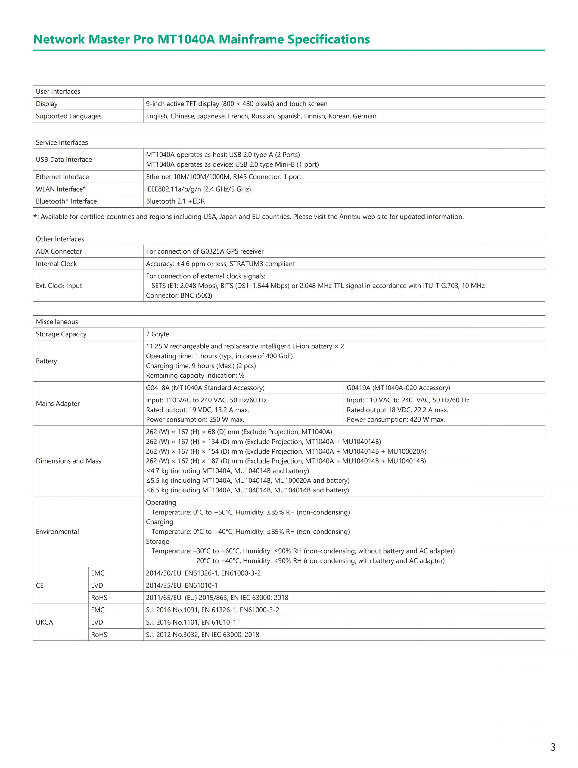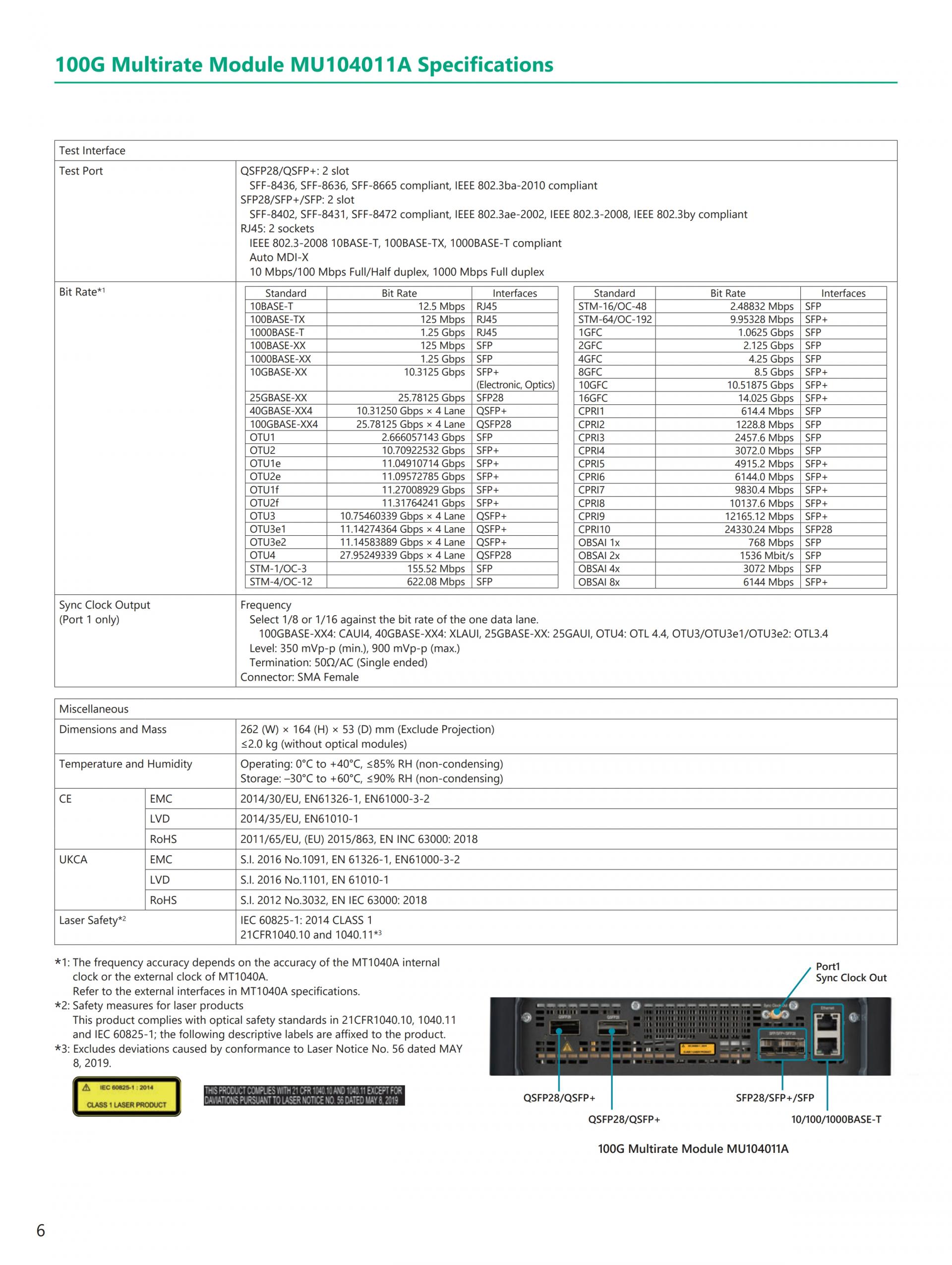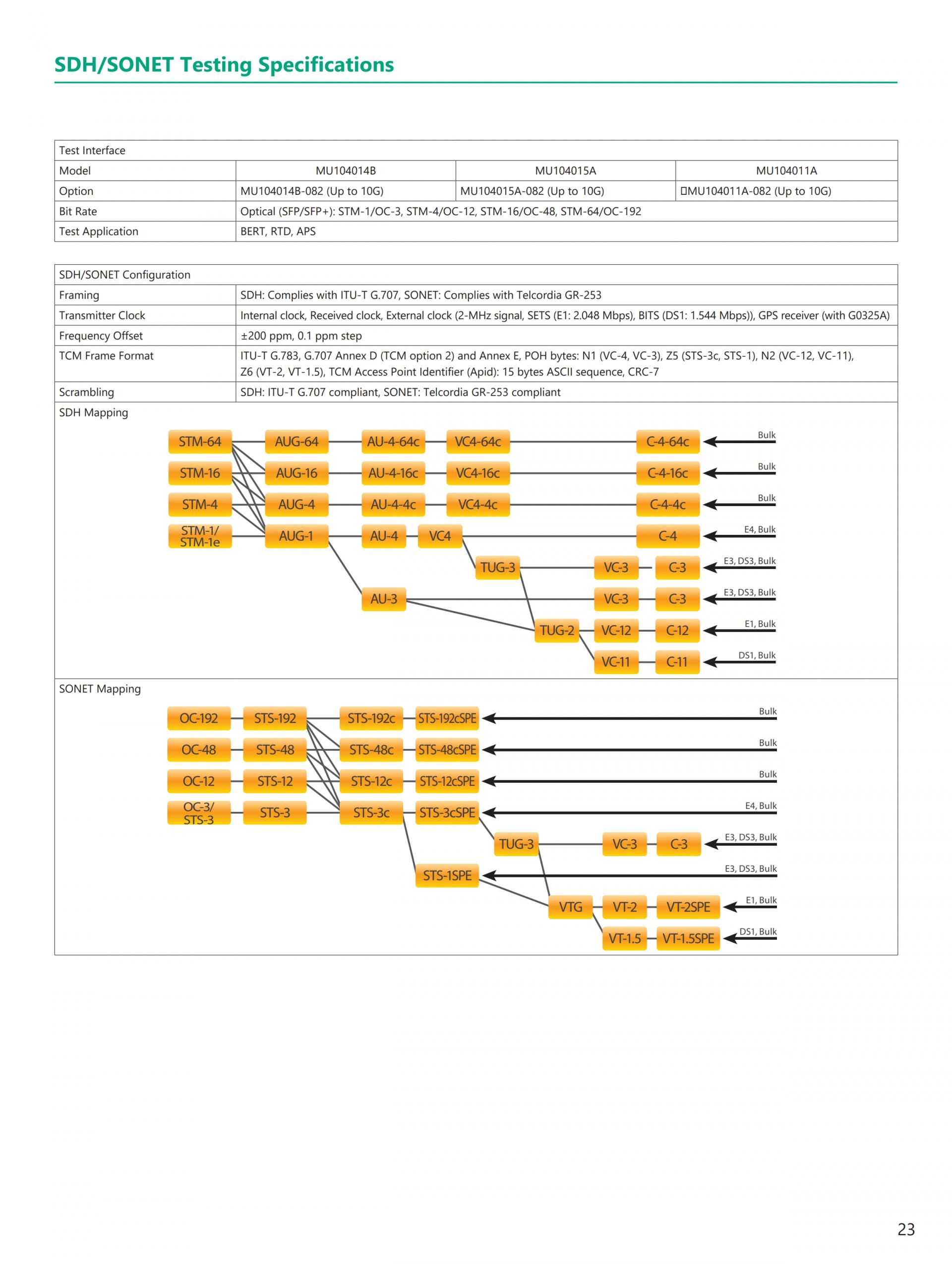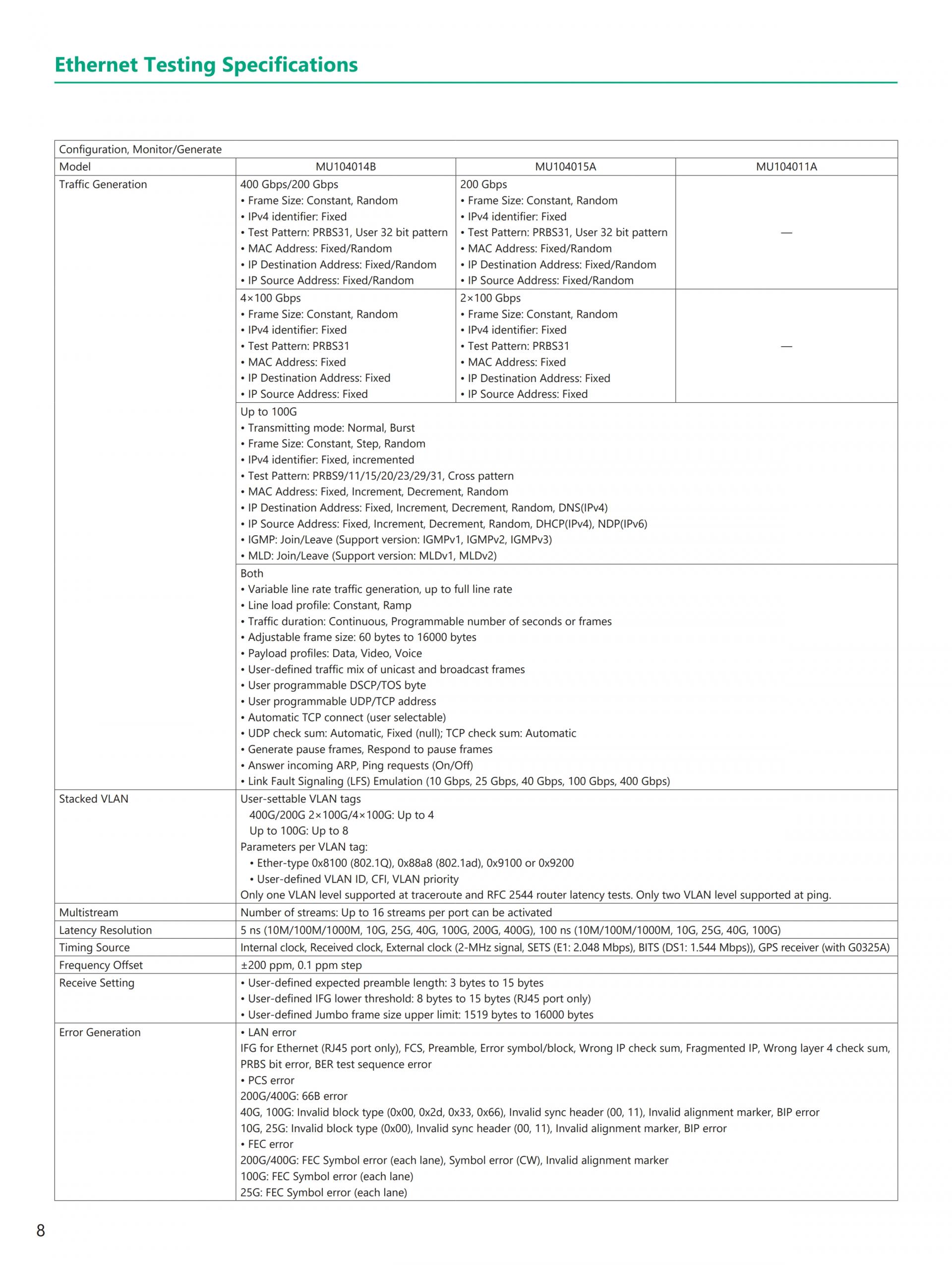 - 현재(이더넷, eCPRI/IEEE1914.3/CPRI/OBSAI, OTN, 파이버 채널) 및 Legacy(SONET/SDH) 기술 지원 전체 이더넷 벤치마크 테스트 제품군 RFC2544, Y.1564, RFC6349