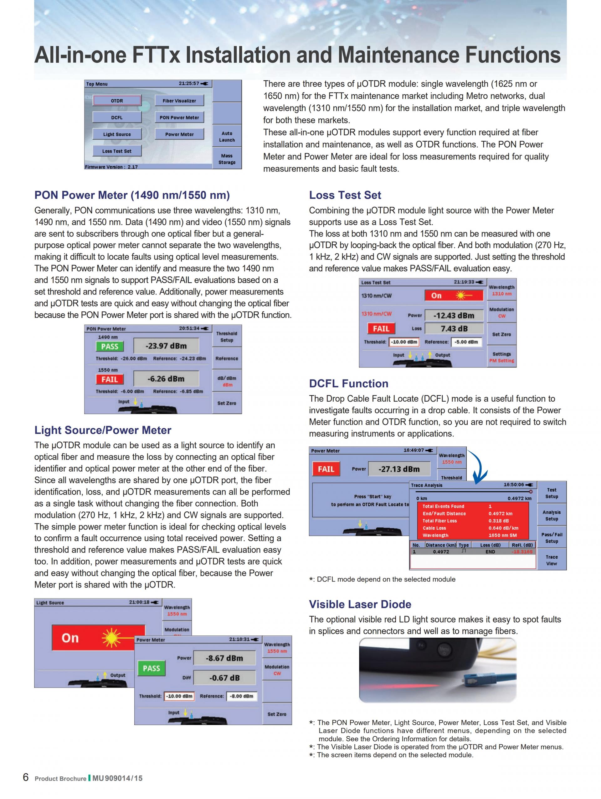 - 고해상도와 극도로 짧은 데드존으로 짧은 파이버 평가를 보장