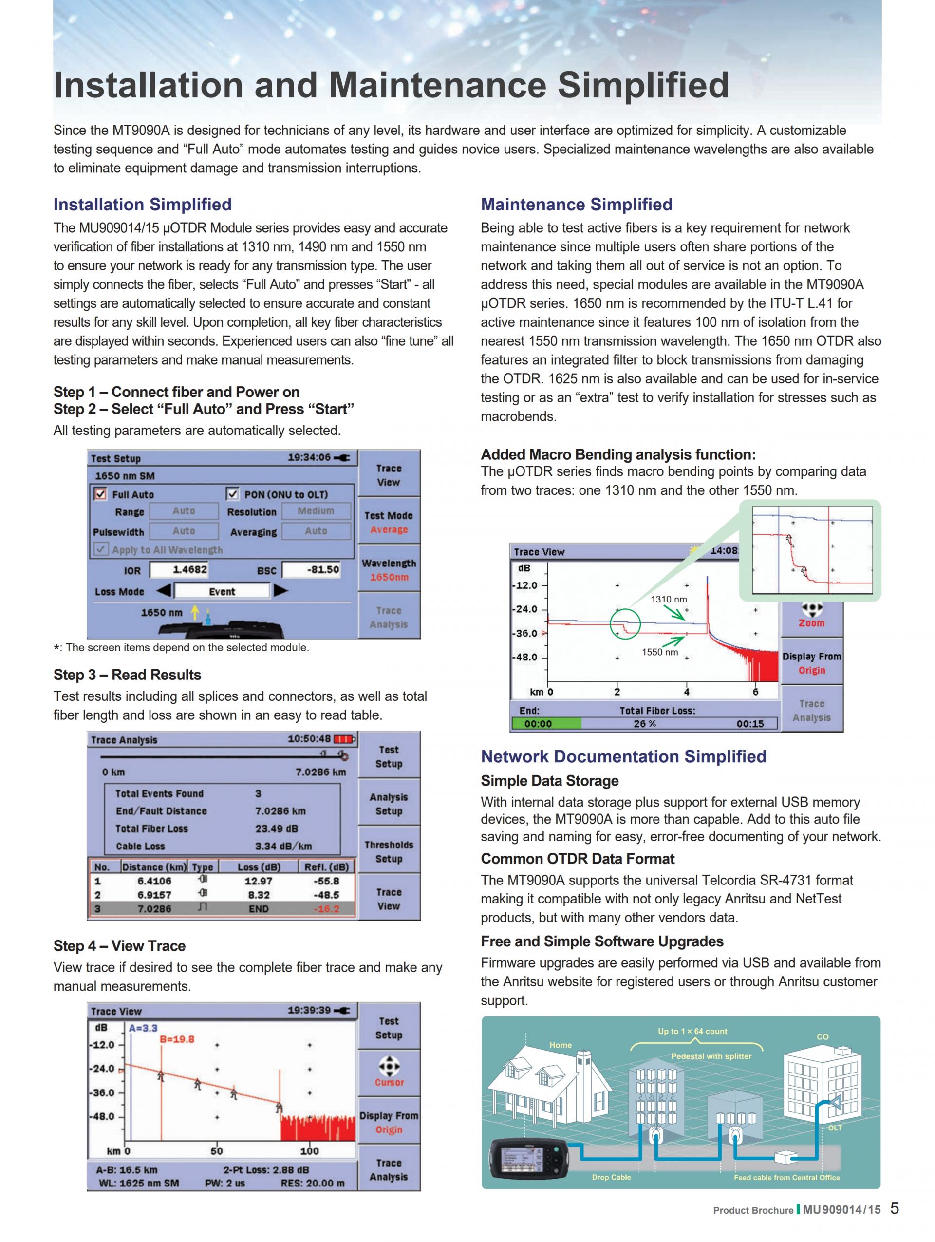 - 짧지만 철저한 파이버 평가를 보장하는 극도로 짧은 데드존과 높은 해상도