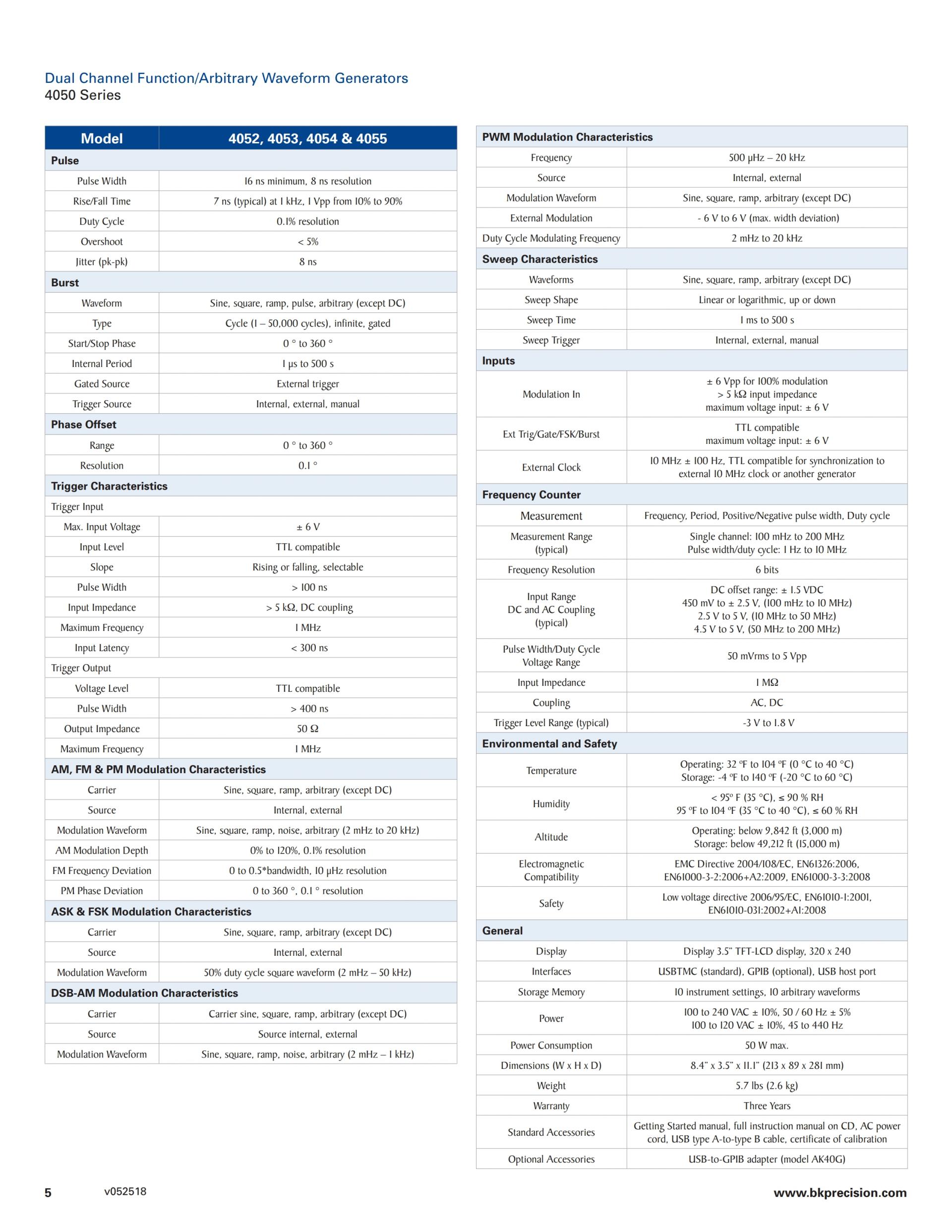 4052 Dual Channel Function/Arbitrary Waveform Generators