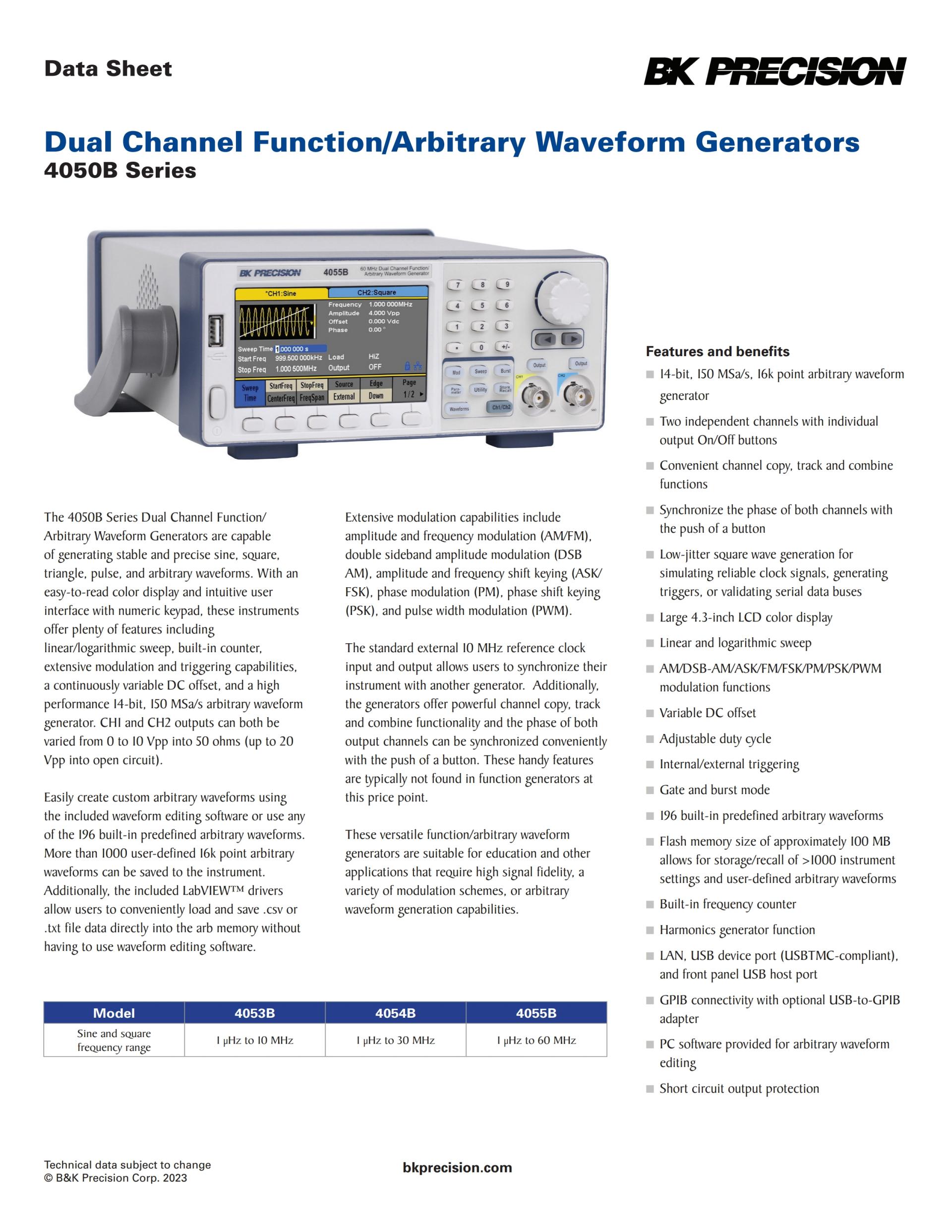 4053B Dual Channel Function/Arbitrary Waveform Generators