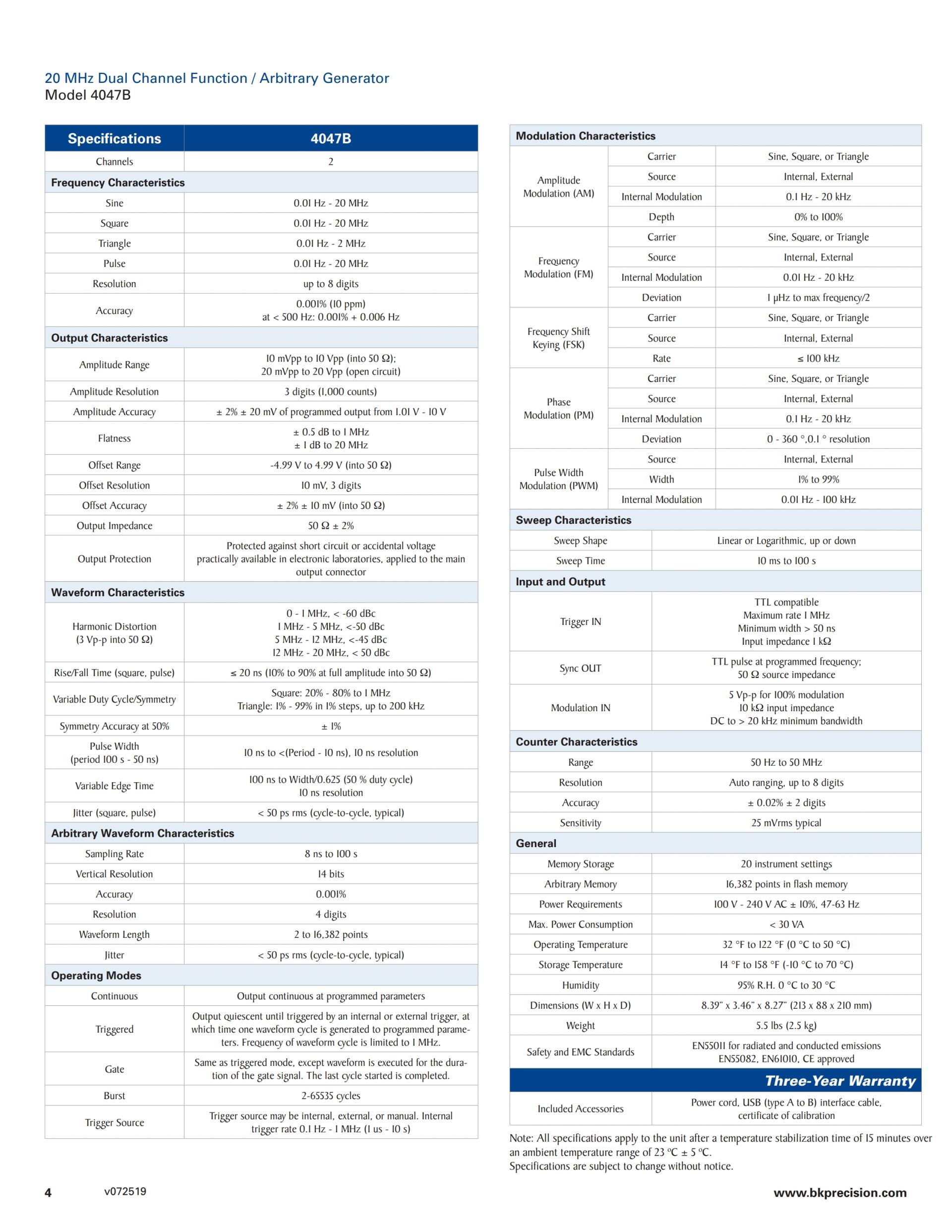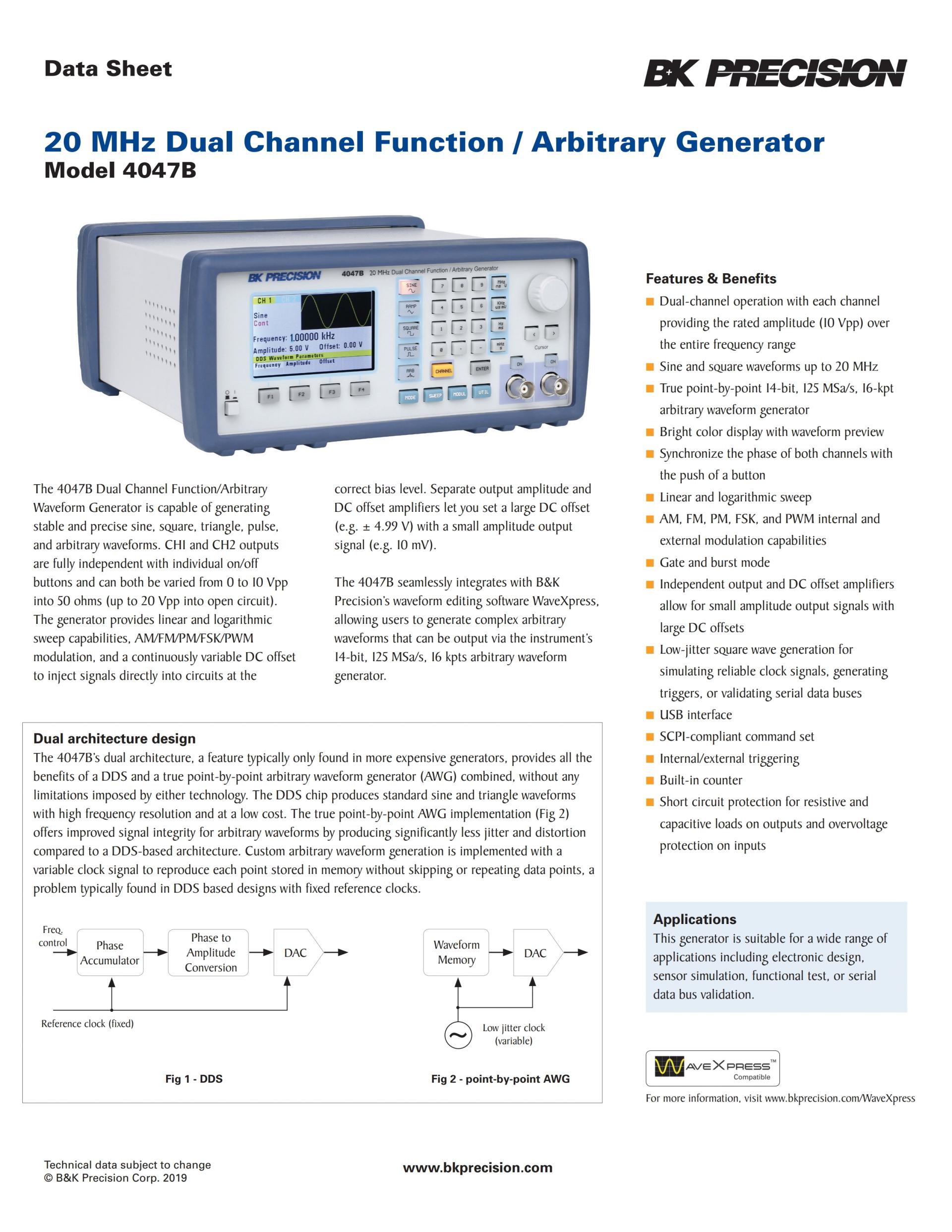 4047B 20 MHz Dual Channel Function / Arbitrary Generator