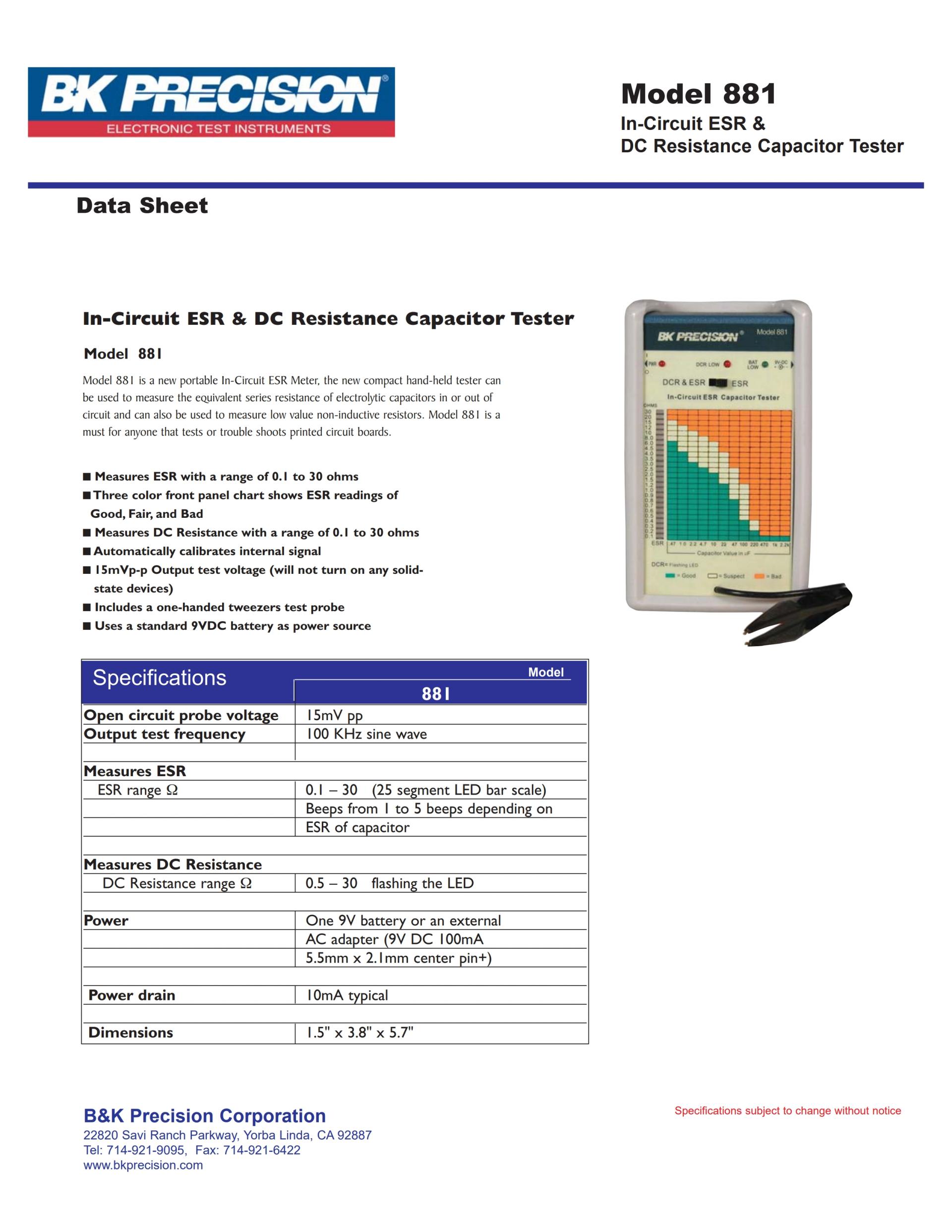 881 In-Circuit ESR & DC Resistance Capacitor Tester