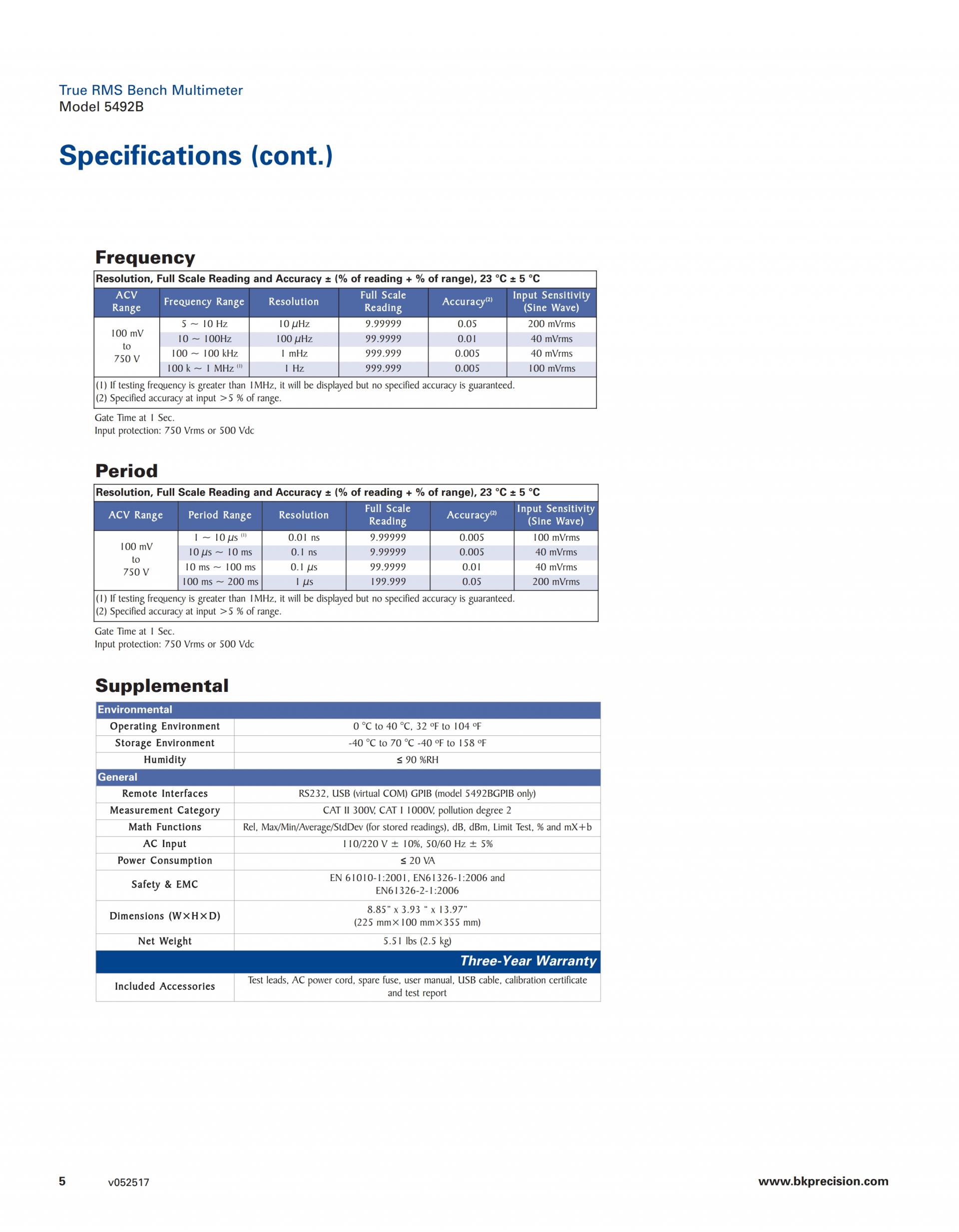5492B True RMS Bench Multimeter