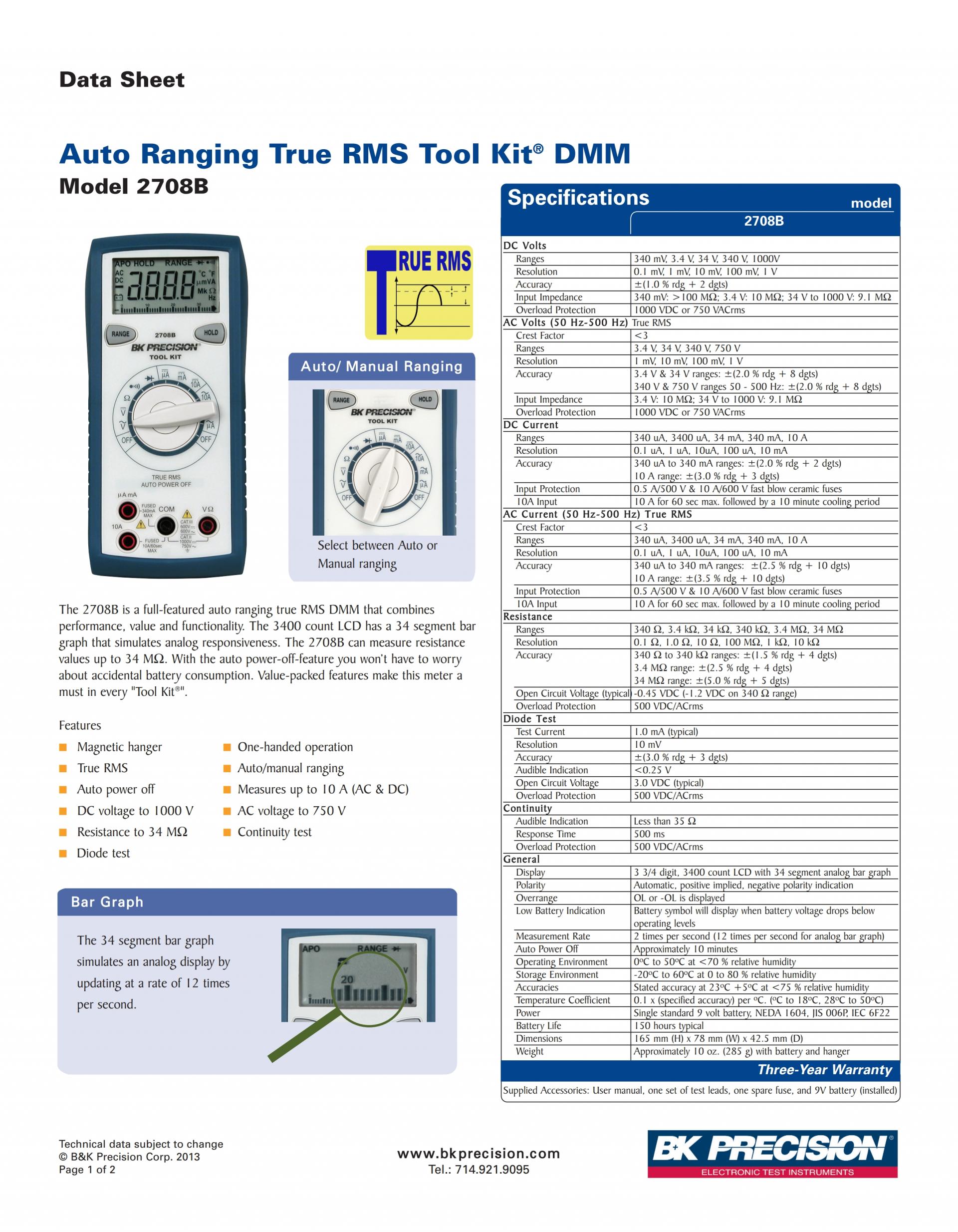 2708B Auto Ranging True RMS Tool Kit® DMM