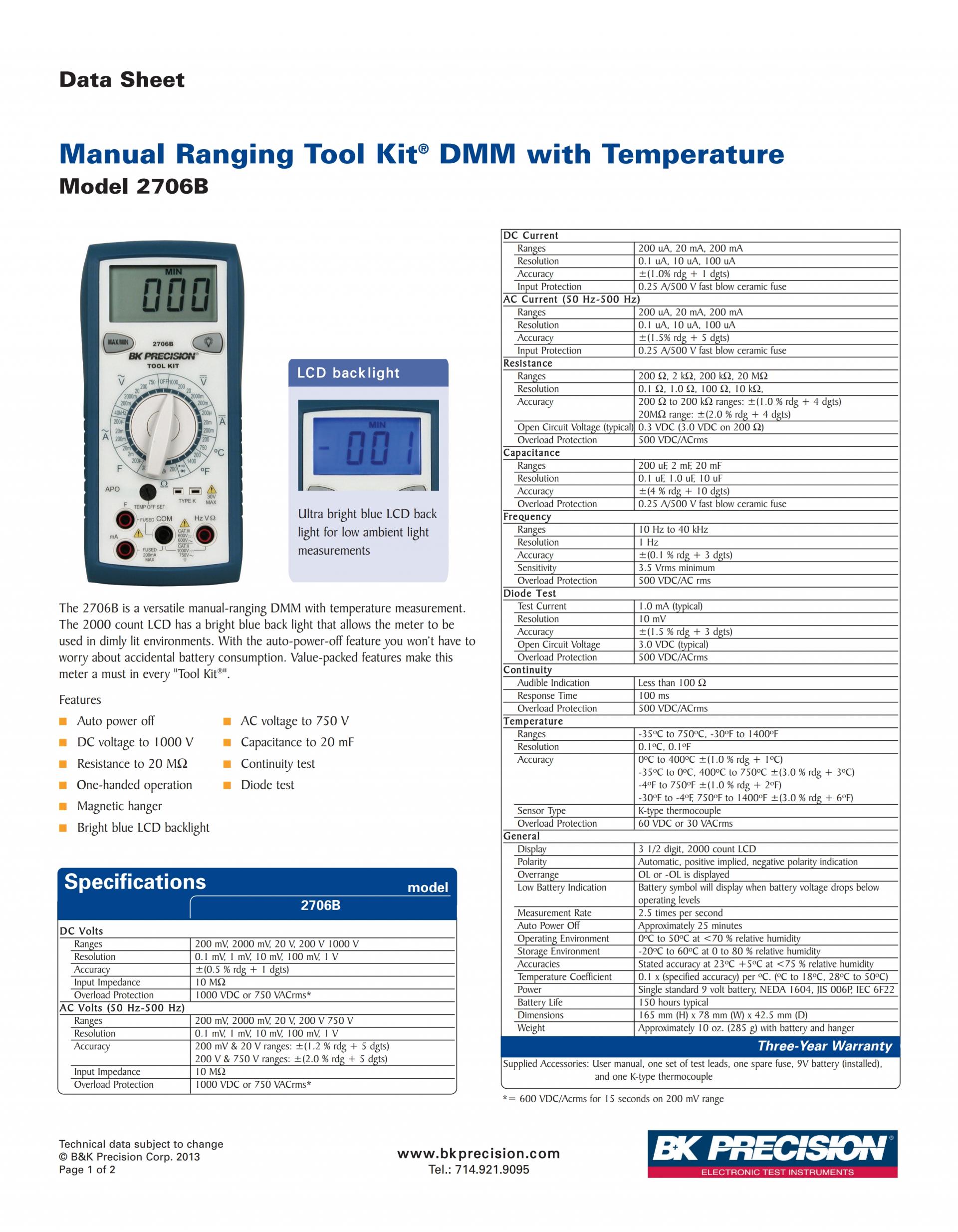 2706B Manual Ranging Tool Kit® DMM with Temperature