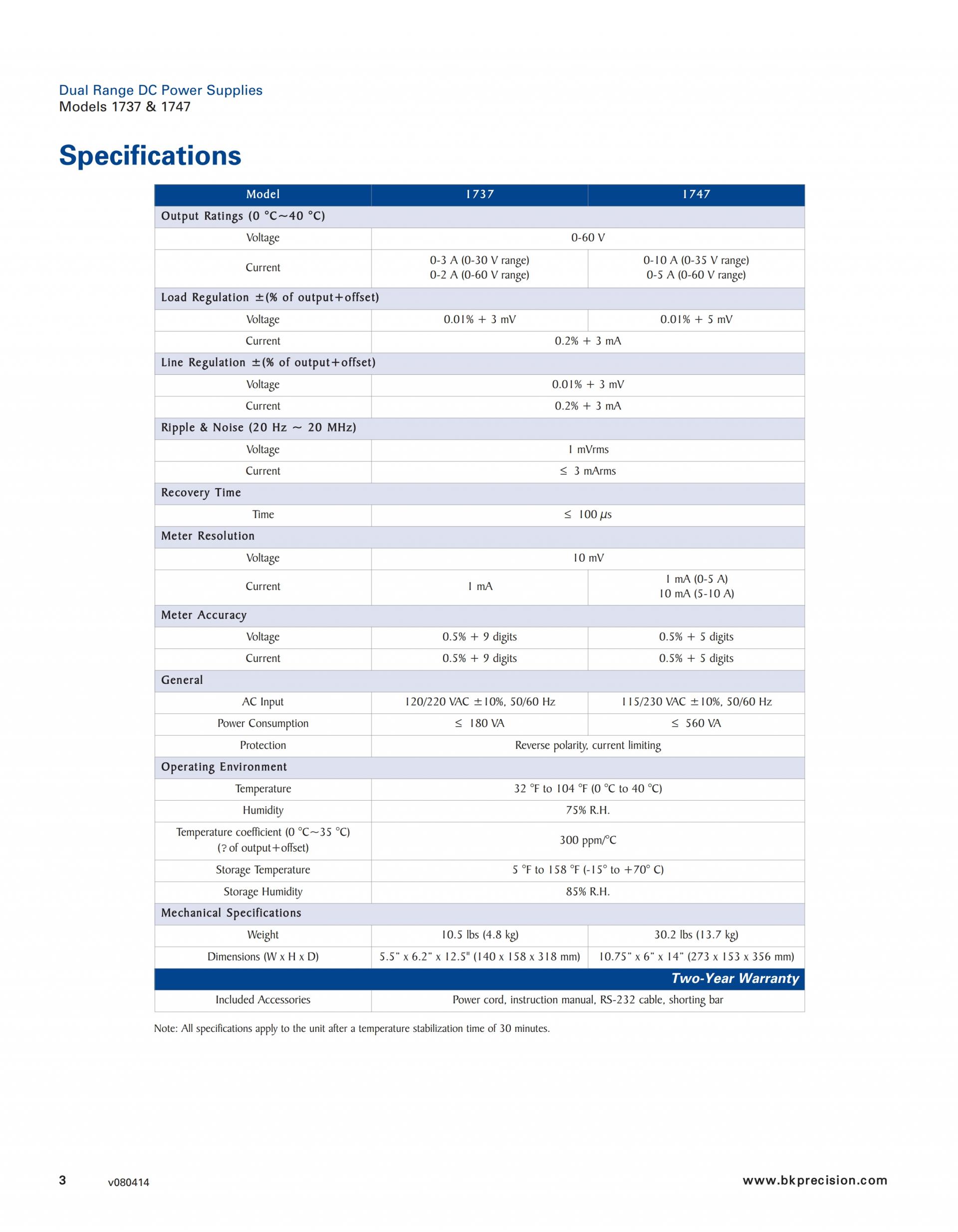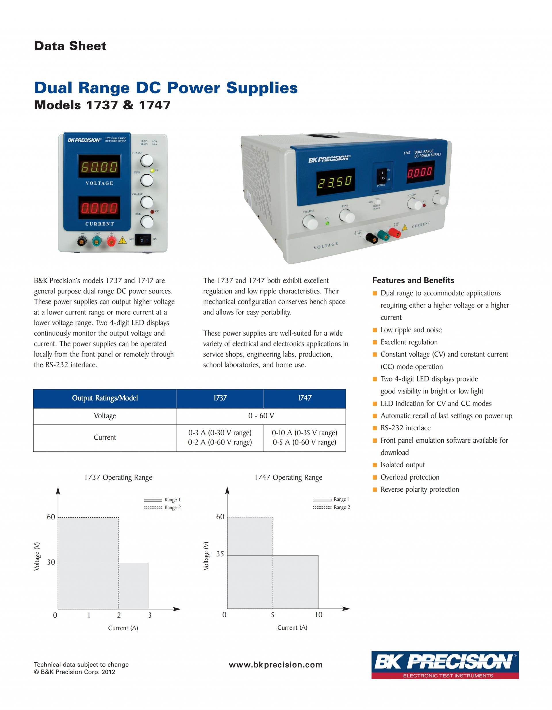 1747 Dual Range DC Power Supplies