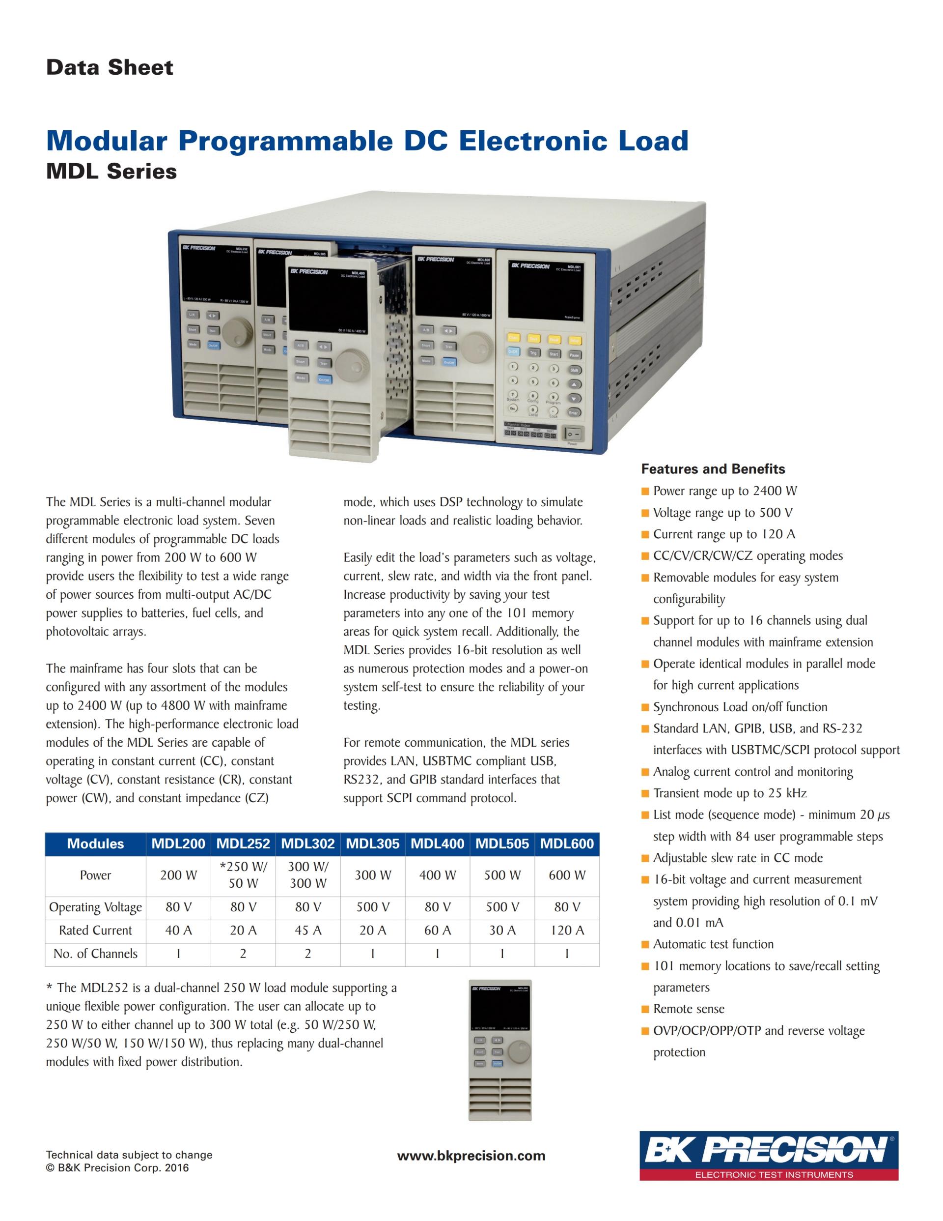 MDL200 Modular Programmable DC Electronic Load