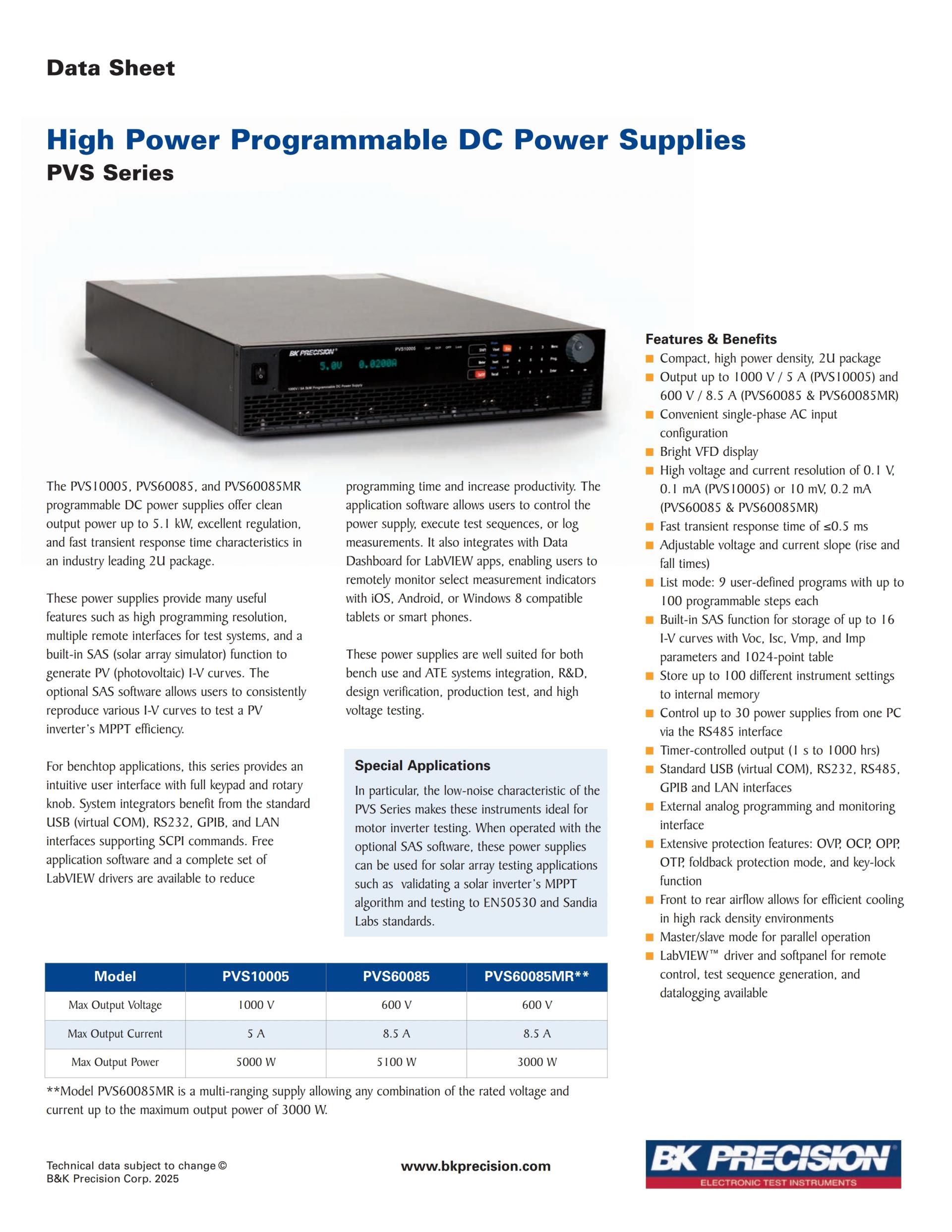 BK PVS60085 고파워 프로그램머블 DC전원공급기