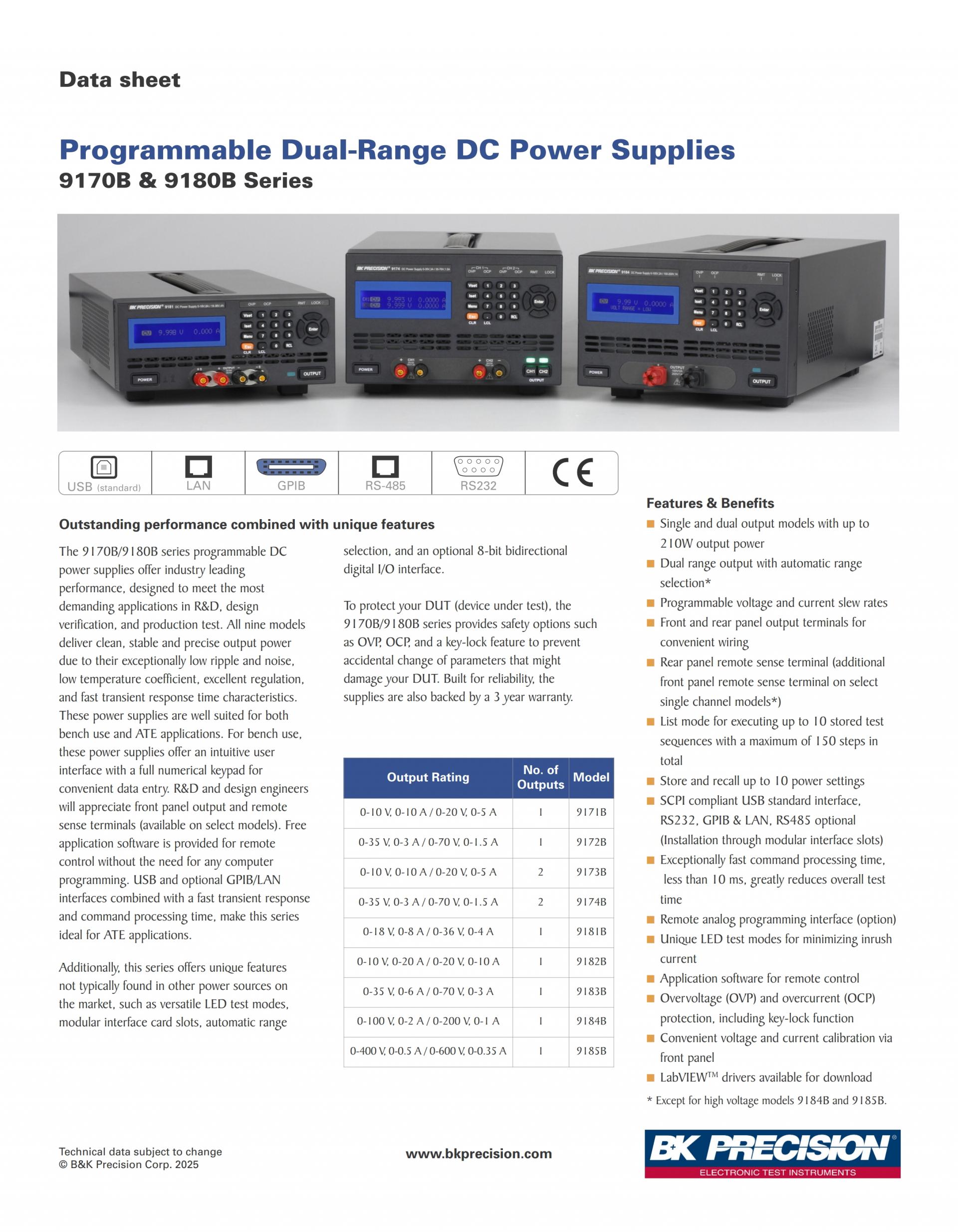 BK 9184B Programmable Dual-Range DC Power Supplies