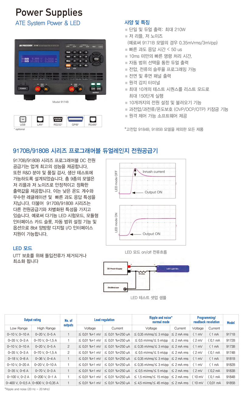 - 저 리플, 저 노이즈 (예로써 9171B 모델의 경우 0.35mVrms/3mVpp)
