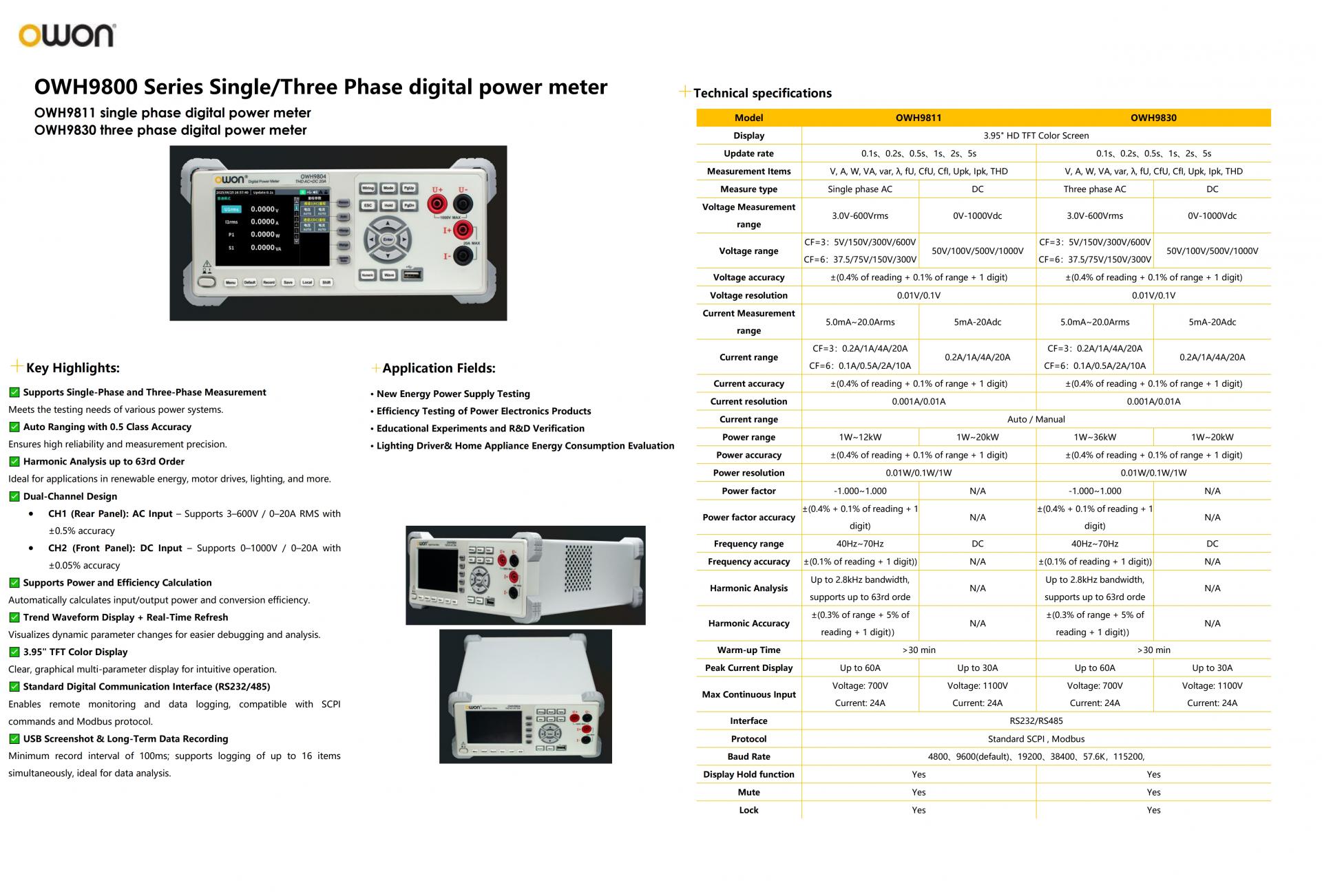 - 63차 고조파 분석까지 : 재생 에너지, 모터 드라이브, 조명 등 다양한 분야에 이상적입니다.