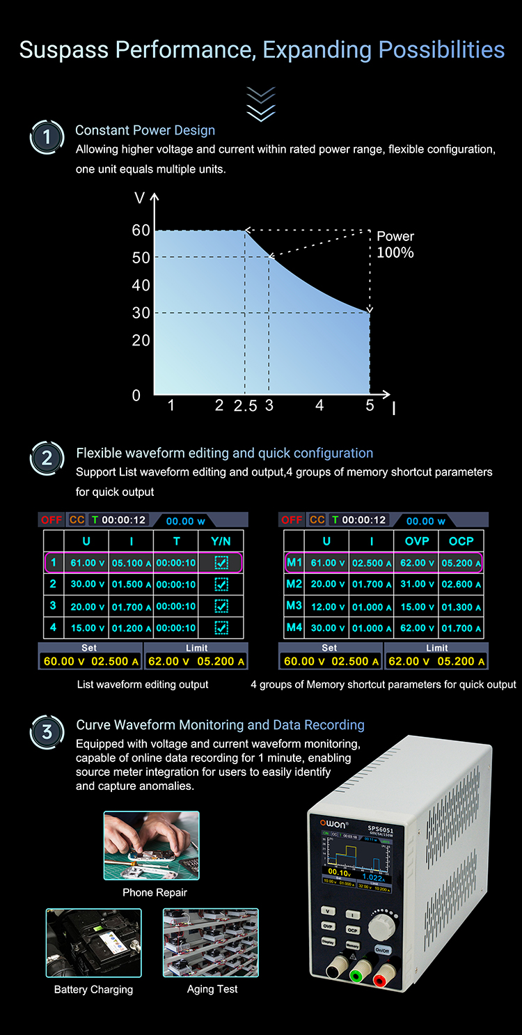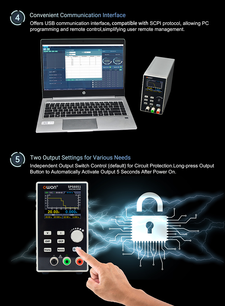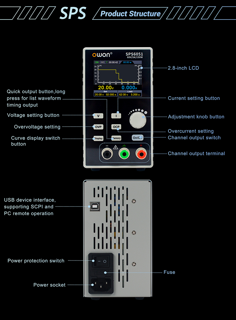 - OWON SPS 무팬 싱글 채널 프로그래밍 가능 DC 전원 공급 장치
