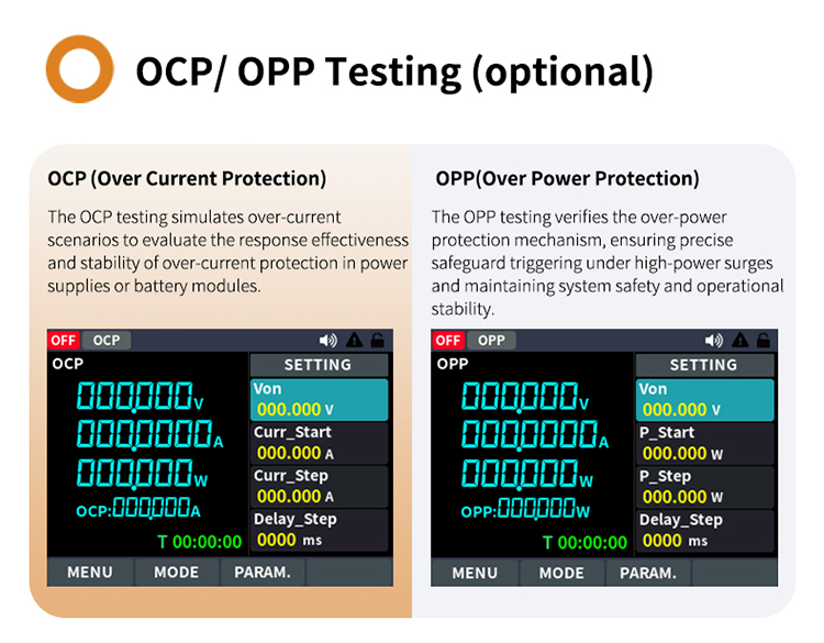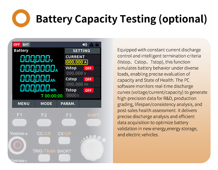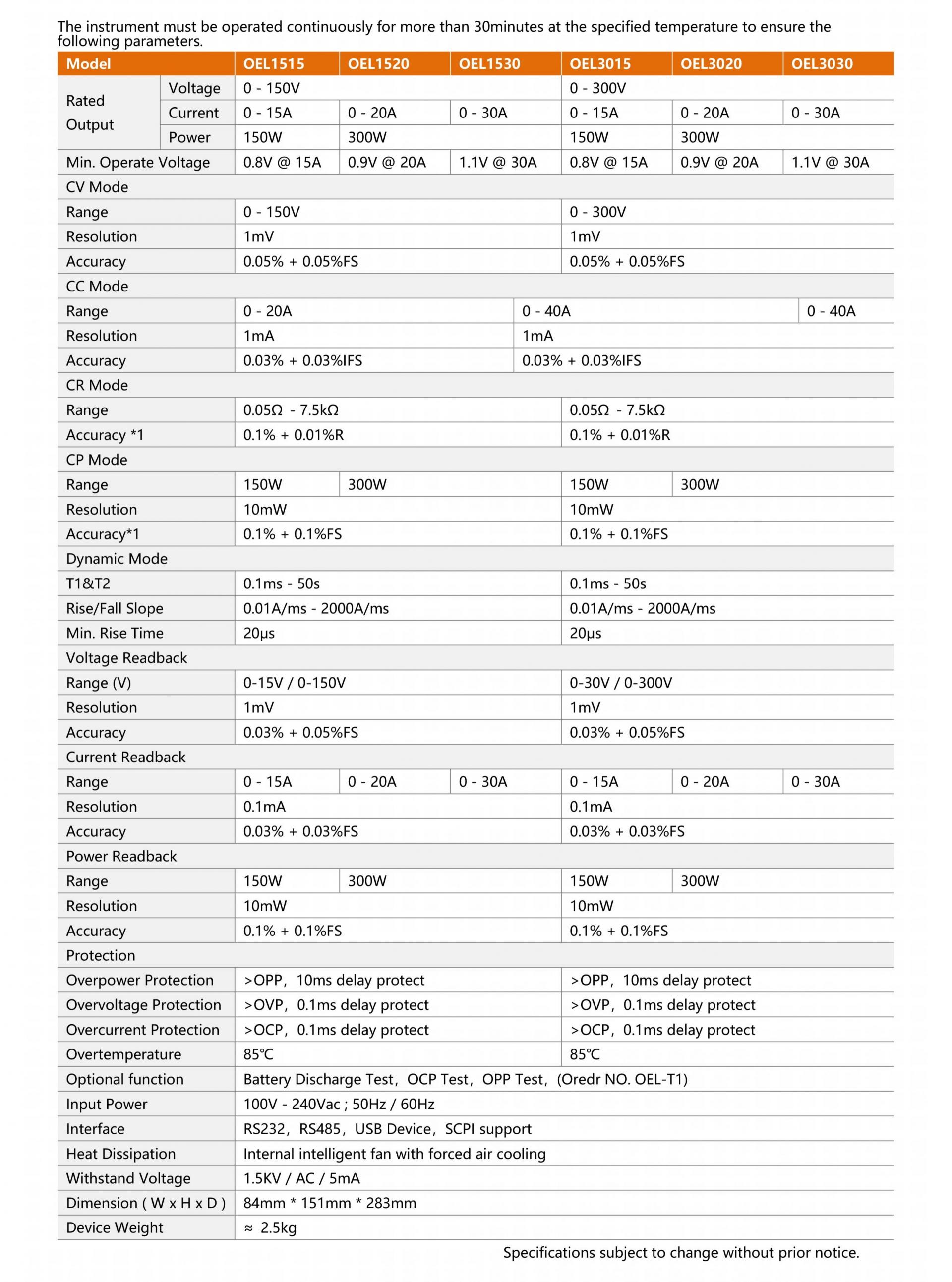 - Optional test functions:Battery Discharge Test, OCP Test, OPP Test (Order No.OEL-T1)