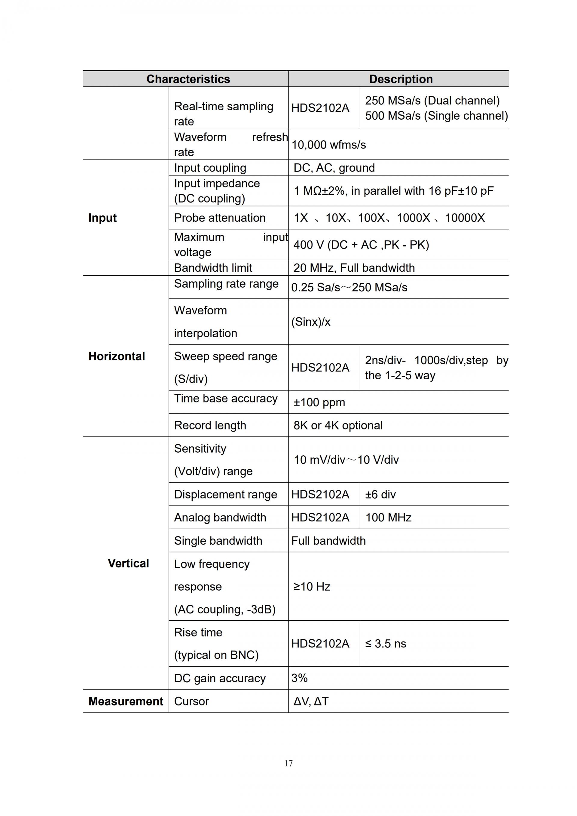 - 100MHz 대역폭, 8kpts 메모리 깊이, 500MSa/s 실시간 샘플링