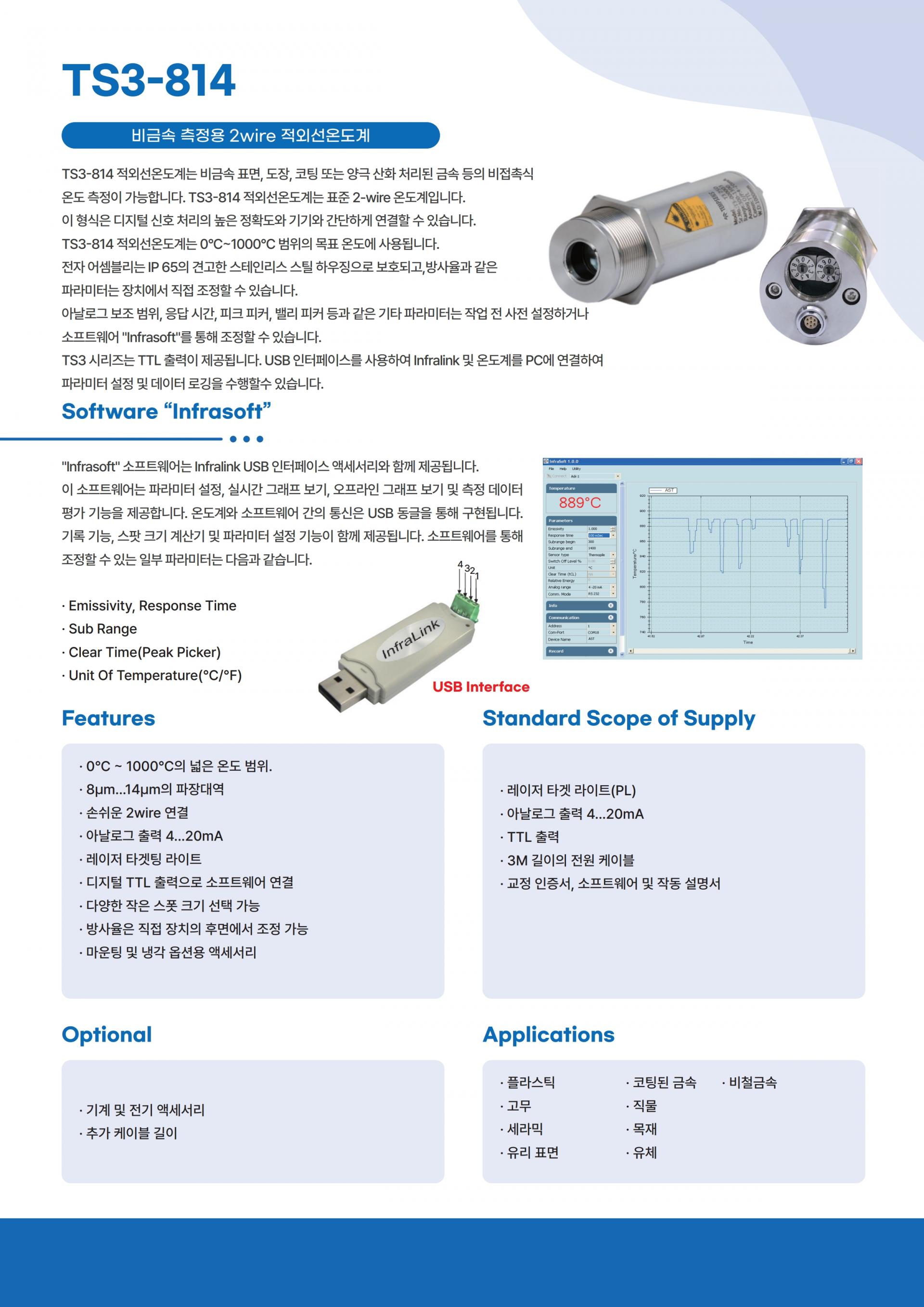 TEMPSENS TS3-814 2-Wire 비금속용 적외선 온도계(0°C~1000°C)