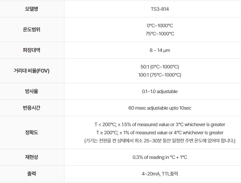 - 온도 범위 : 0°C~1000°C, 75°C~1000°C