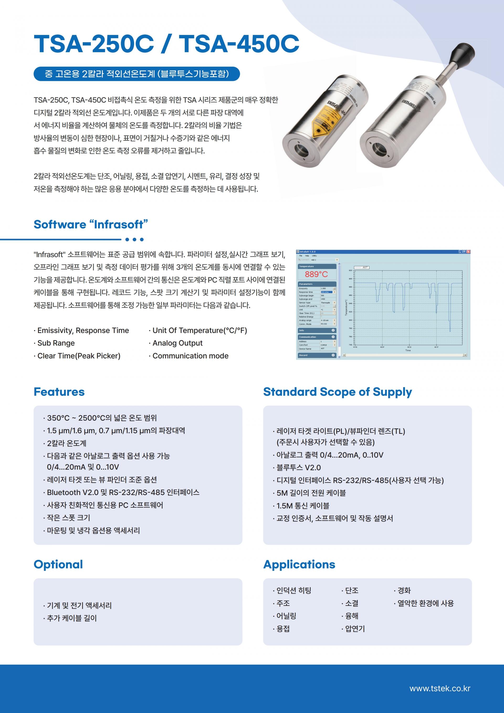 TEMPSENS TSA-250C 중고온용 2-COLOR 적외선 온도계 (350°C ~ 1350°C)
