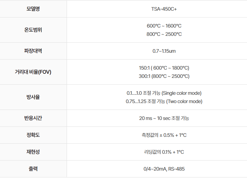 - 온도 범위 : 600°C ~ 1600°C, 800°C ~ 2500°C