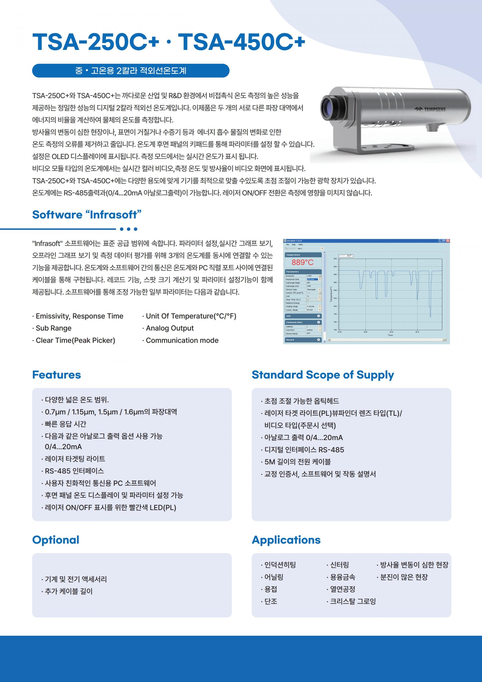 TEMPSENS TSA-450C+ 고온용 2-COLOR 적외선 온도계 (600°C ~ 2500°C)