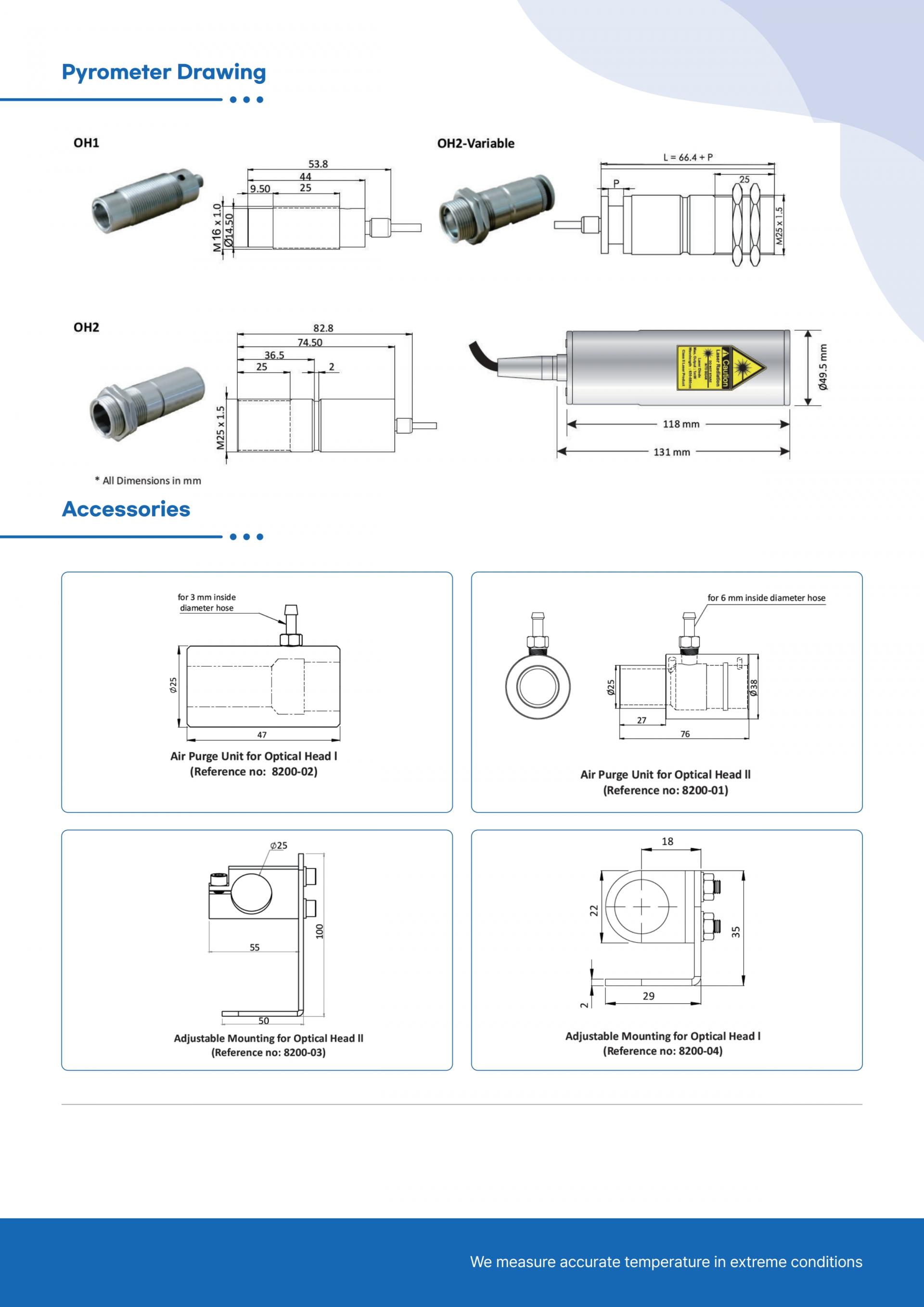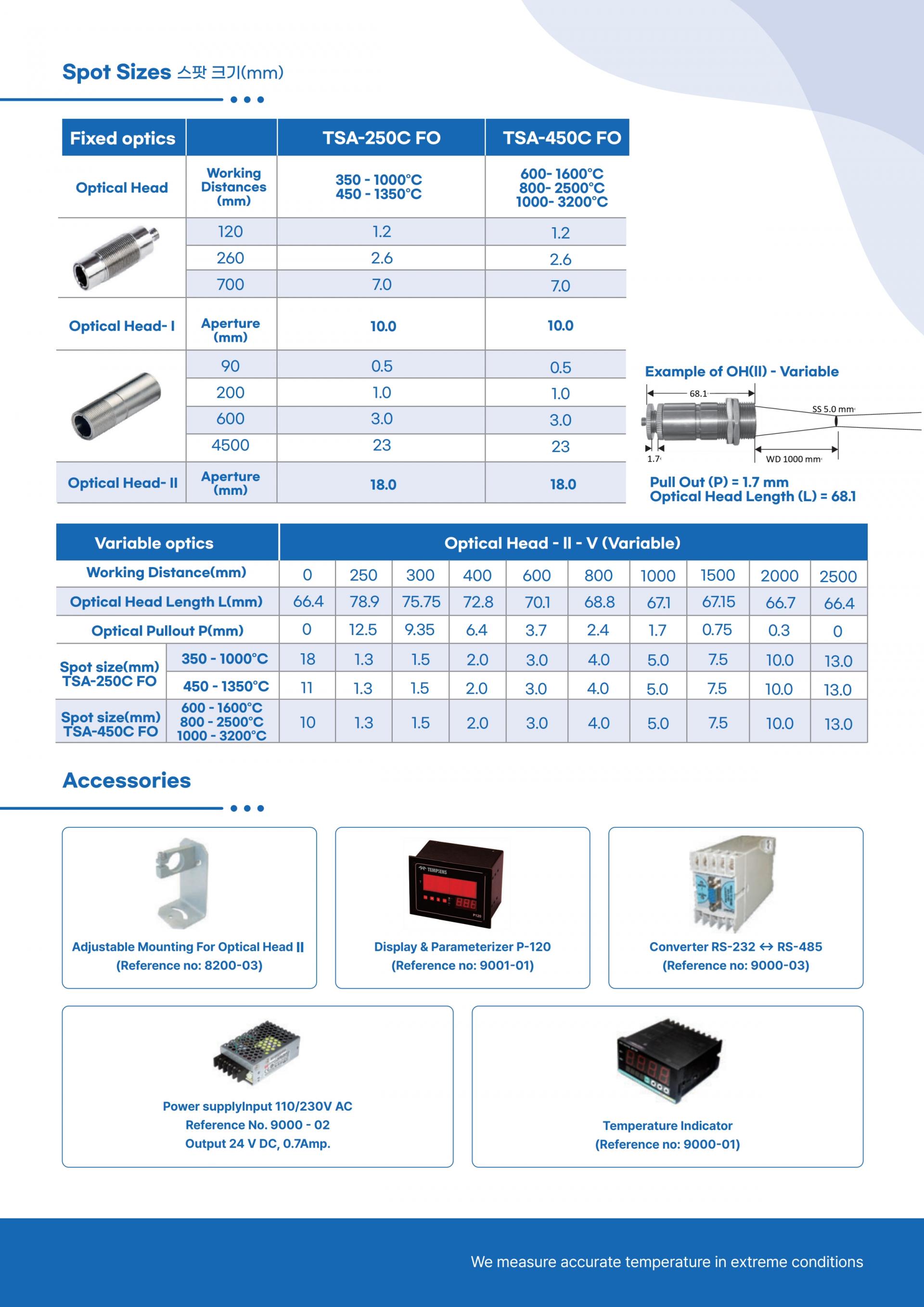- 온도 범위 : 600°C ~ 1600°C, 800°C ~ 2500°C, 1000°C ~ 3200°C