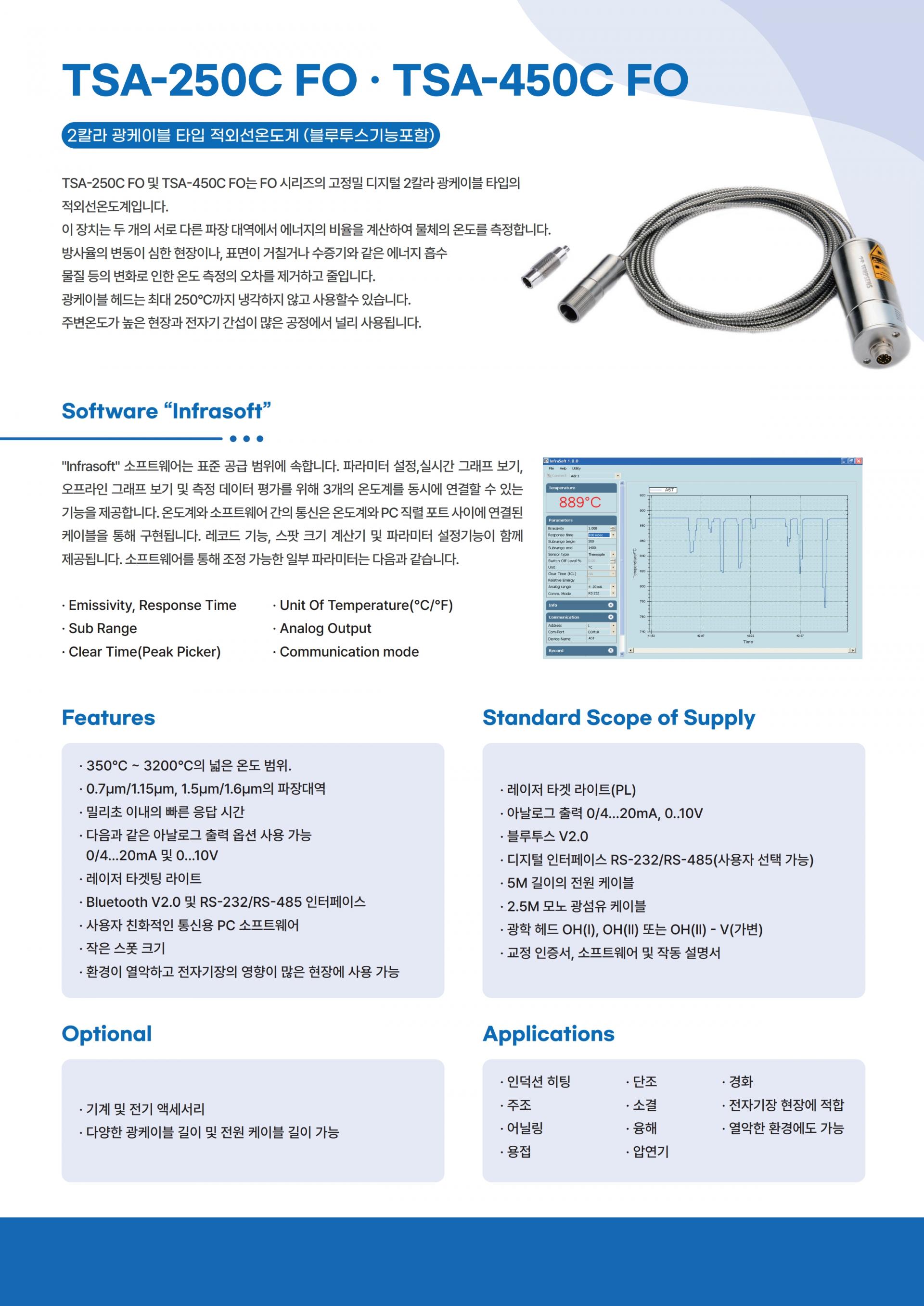 - 고온용 광케이블 타입의 2-COLOR 적외선 온도계