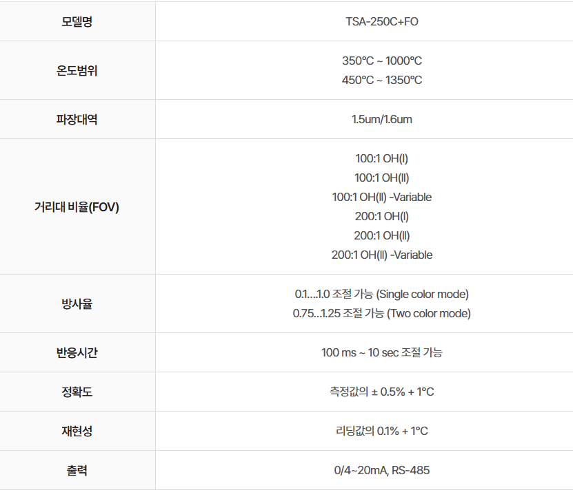 - 온도 범위 : 350°C ~ 1000°C, 450°C ~ 1350°C