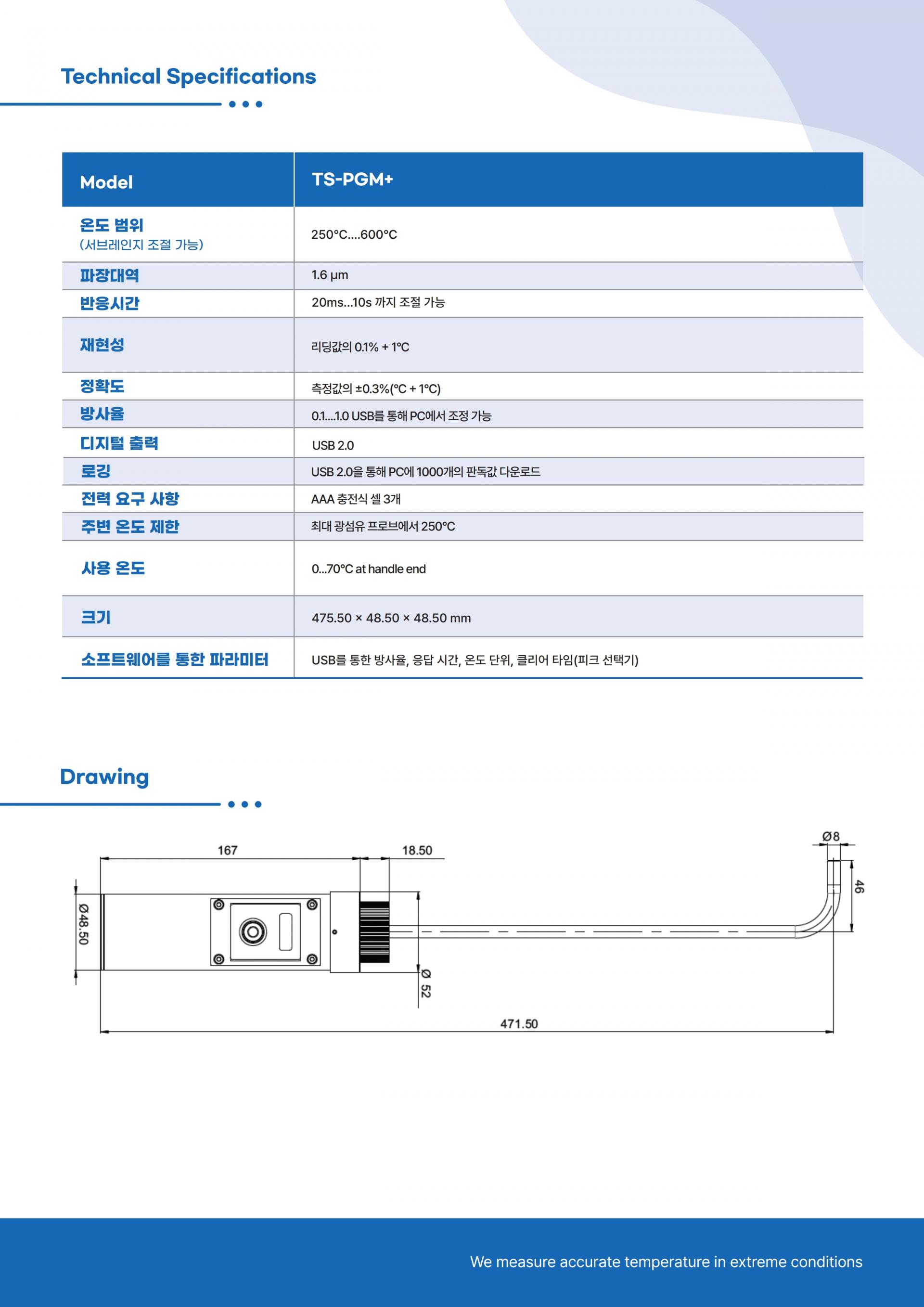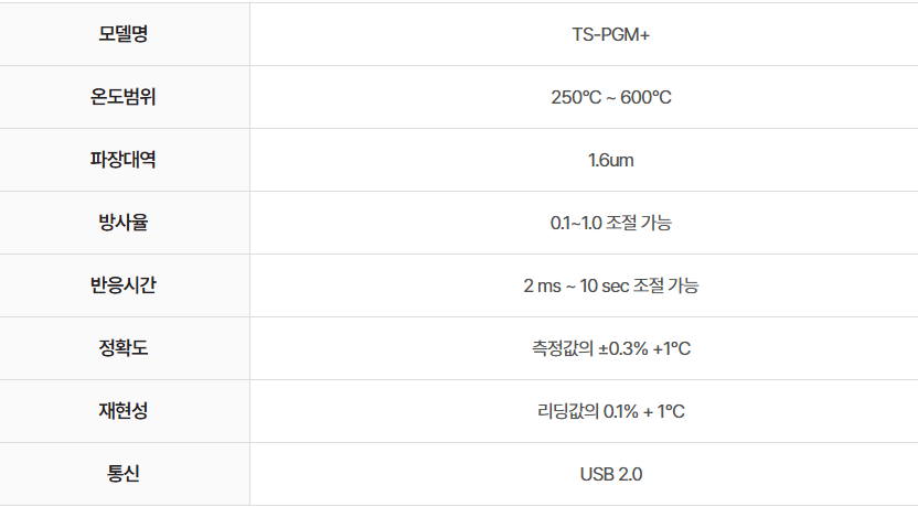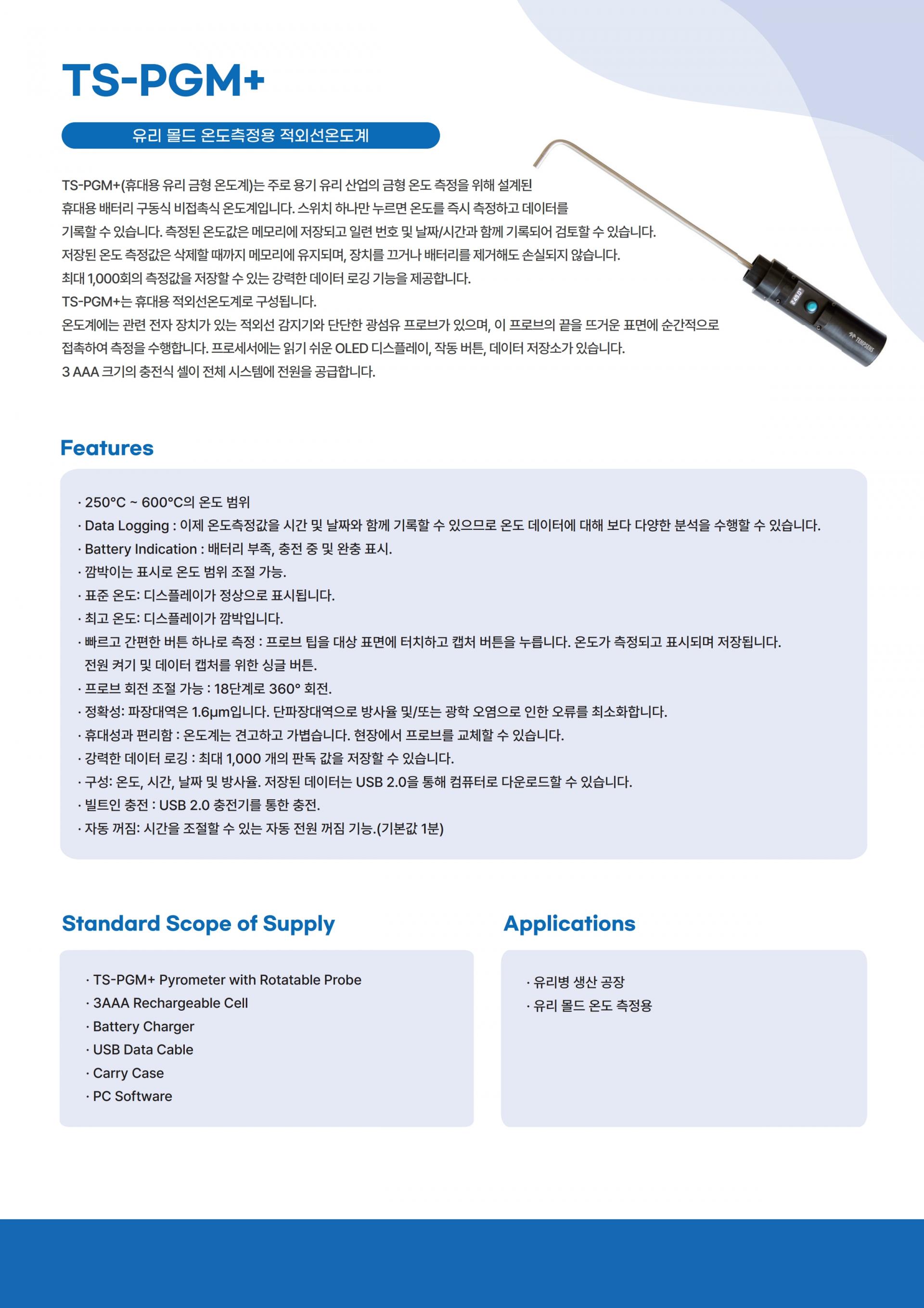 TEMPSENS TS-PGM+ 유리 몰드 측정용 휴대용 적외선 온도계 (250°C ~ 600°C)