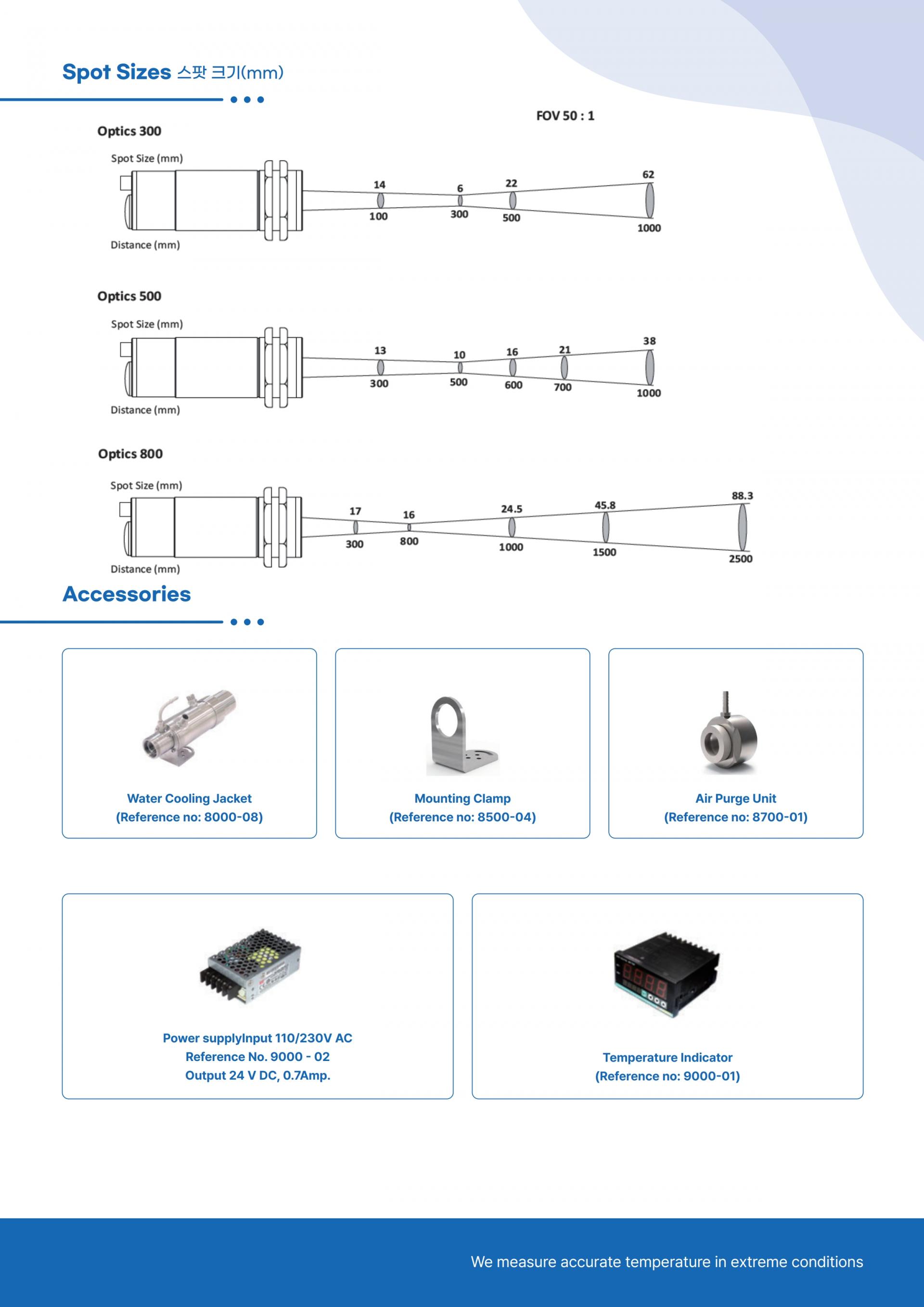 - 온도 범위 : 300°C ~ 1400°C, 400°C ~ 2500°C