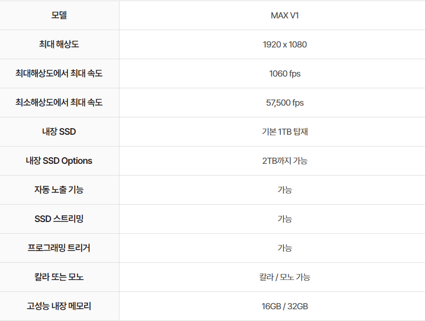 - 최소 해상도에서 최대 속도 : 57,500 fps