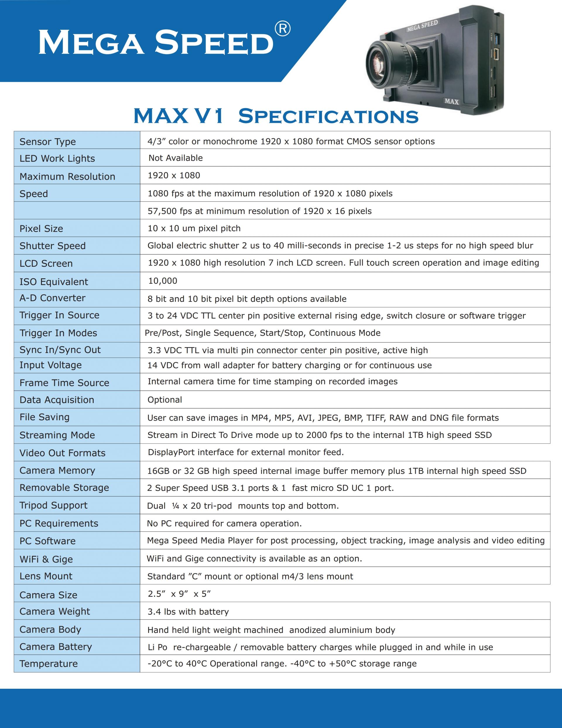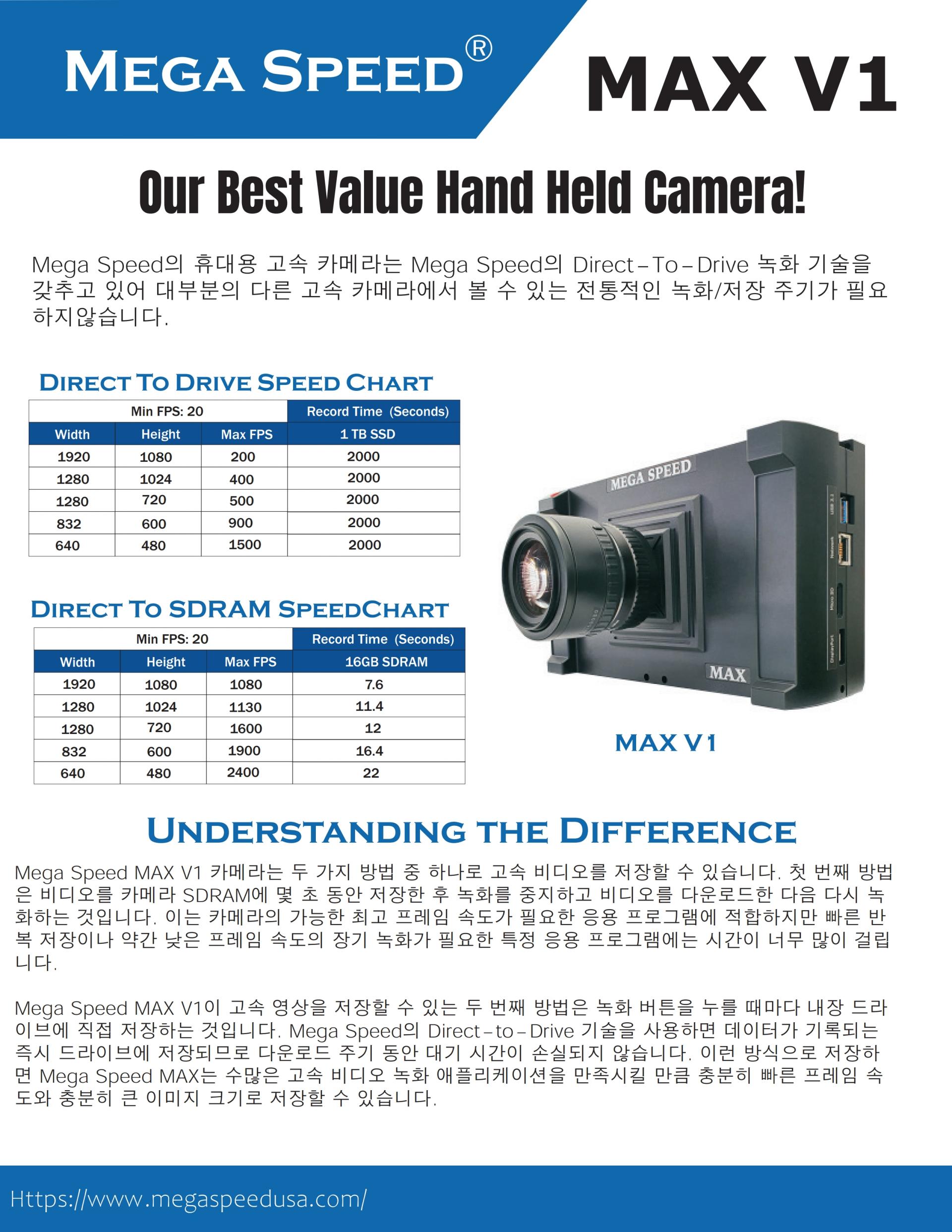 MEGASPEED MAX V1 고속카메라 1920 x 1080, 속도 1060 FPS