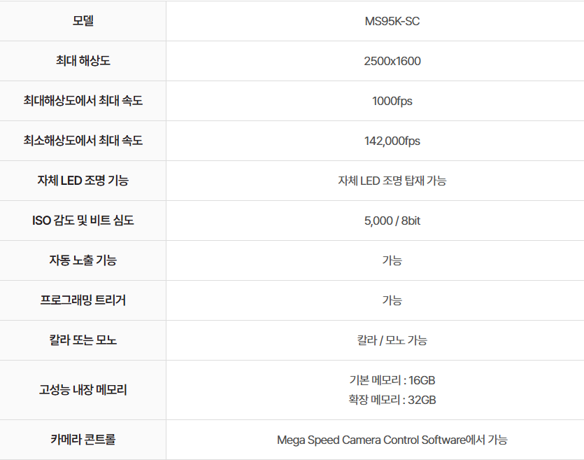 고속카메라 2500x1600, 속도 1000FPS