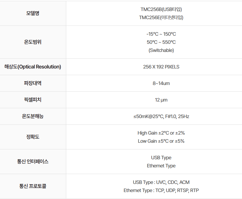 THERMOEYE TMC256 열화상카메라 256 X 192 PIXELS (온도 범위 -15°C ~ 550°C)