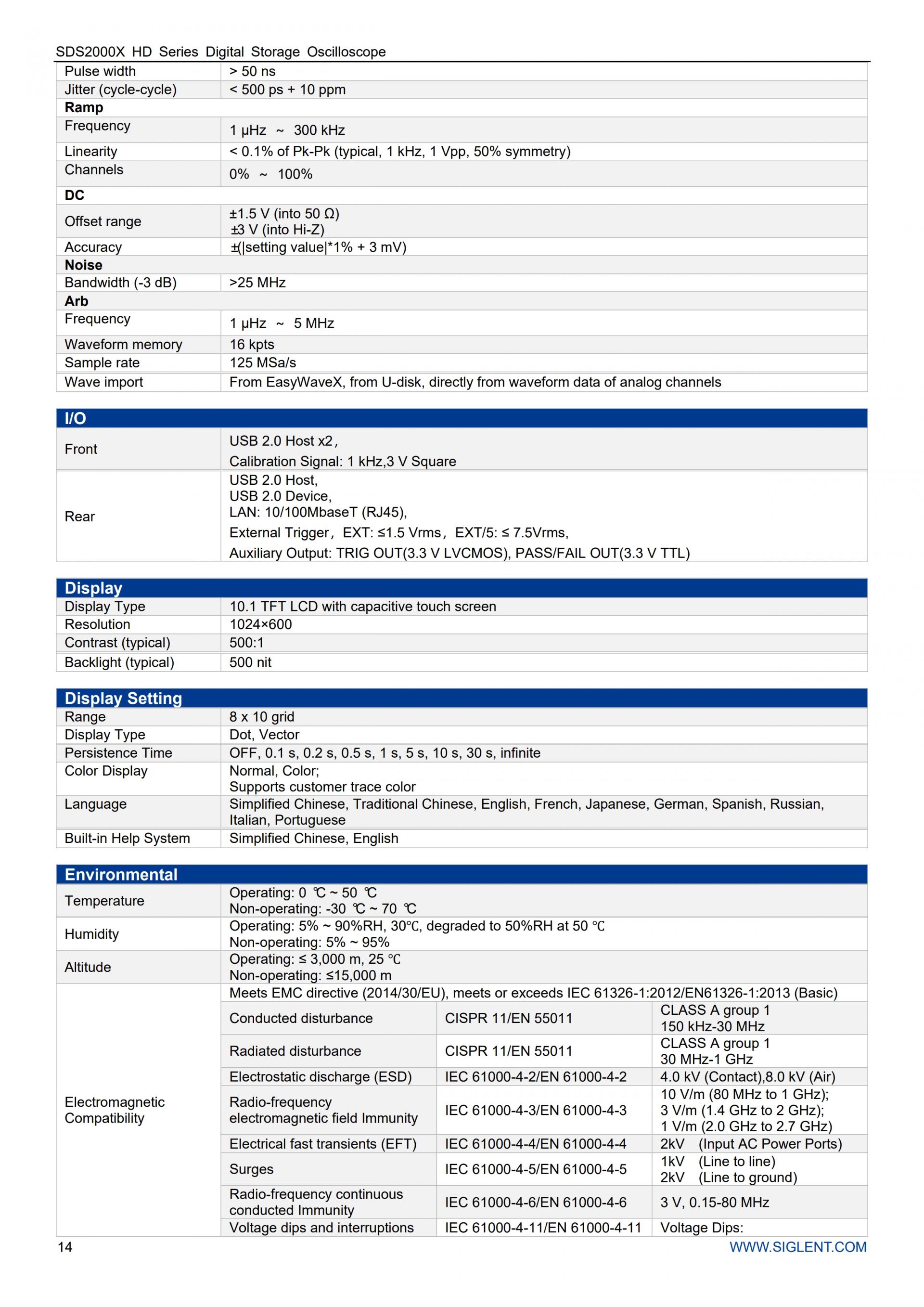 - 인터페이스에는 다음이 포함됩니다: USB 호스트, USB 장치(USBTMC), LAN(VXI-11/Telnet/소켓), 통과/실패, 트리거 아웃